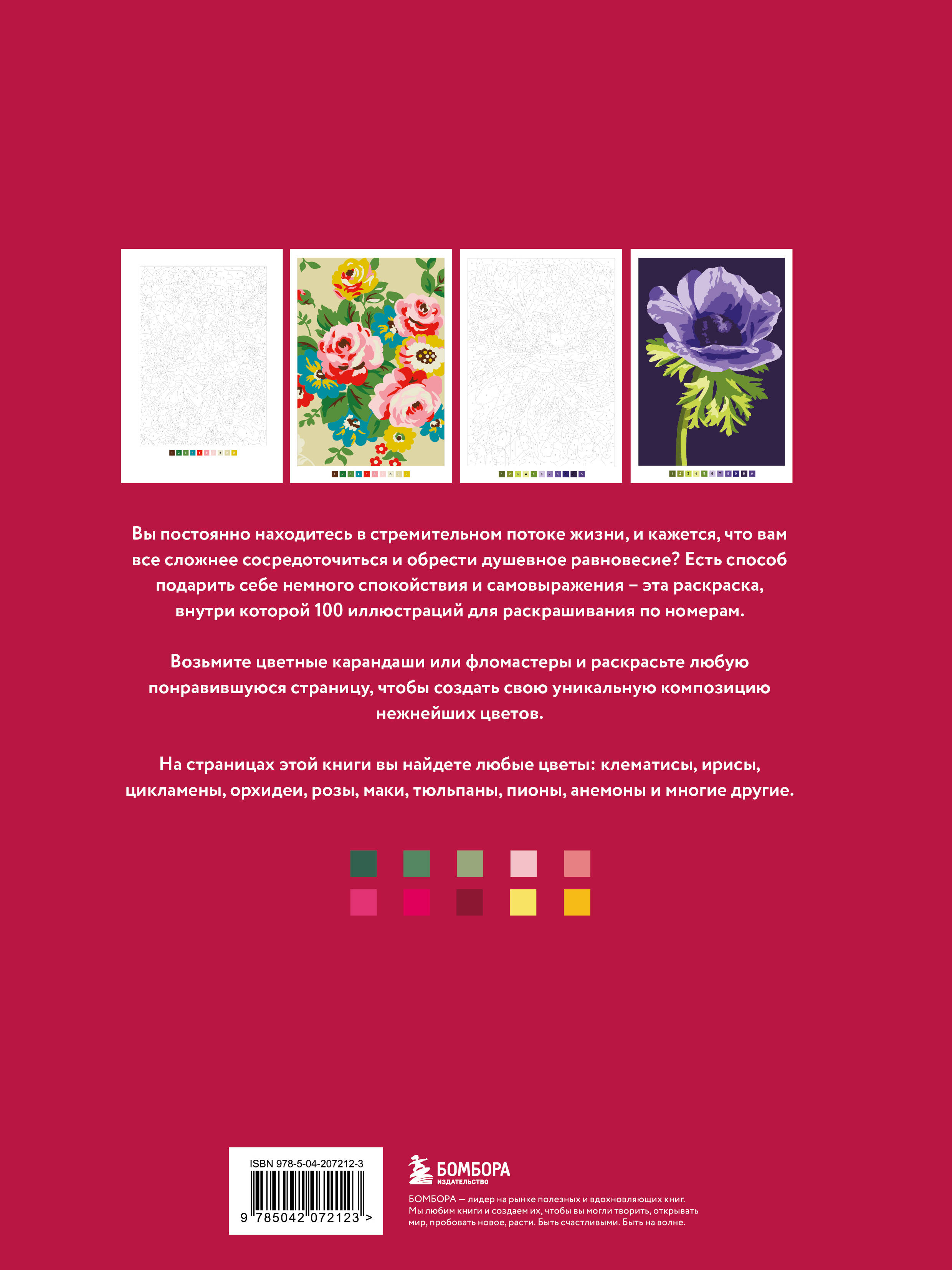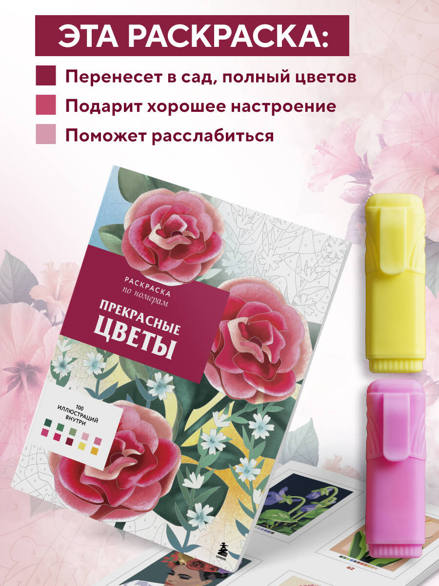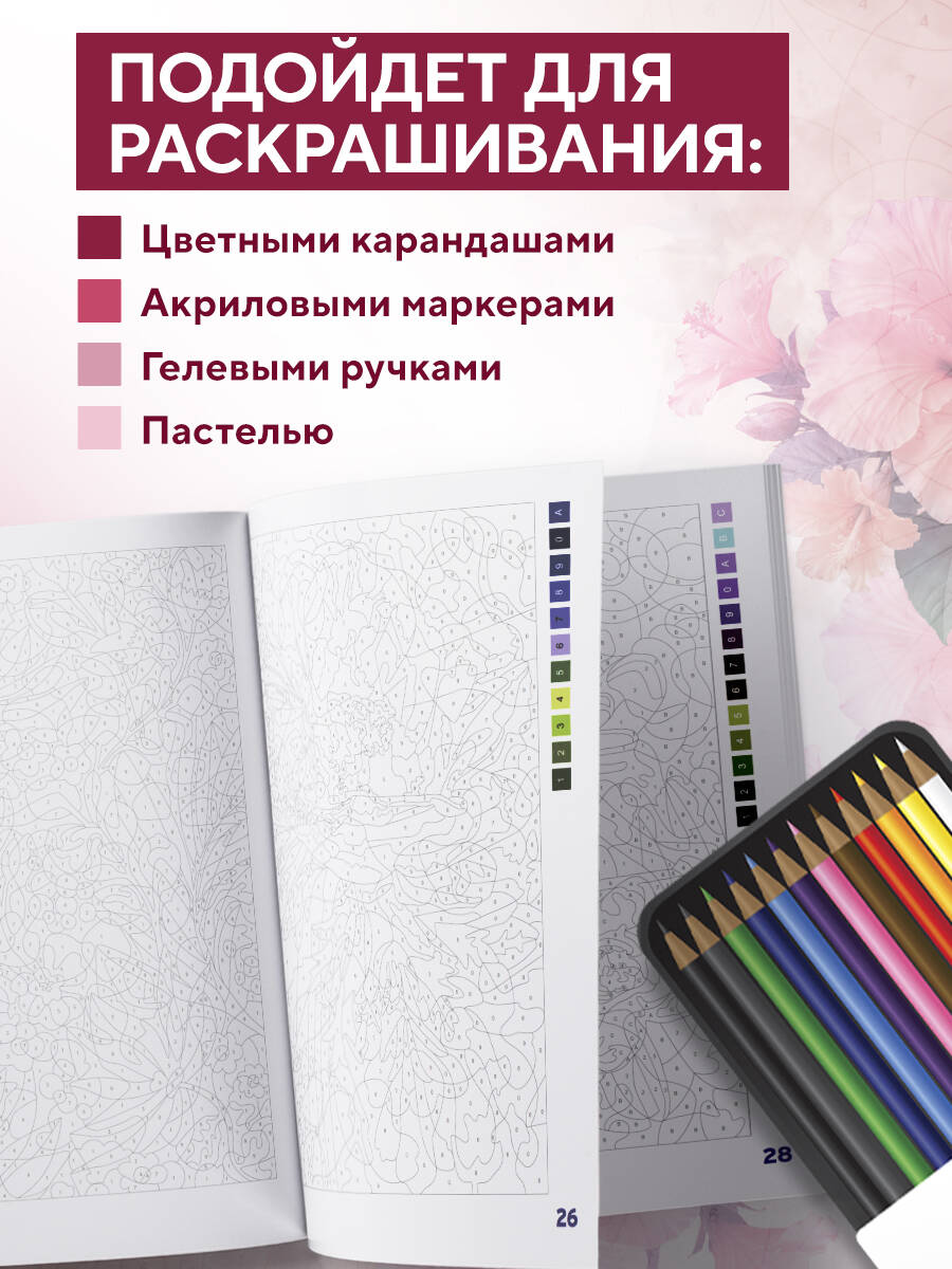 Стрессу и усталости в наше время подвержен почти каждый человек. Как с ними бороться? Как прийти в гармоничное состояние? Подарите себе увлекательный творческий вечер с раскраской по номерам! Внутри этого издания вас ждут иллюстрации самых разных цветов: клематисы, ирисы, цикламены, орхидеи, розы, маки, тюльпаны, пионы, анемоны и многие другие. Переключитесь от будничной суеты и наблюдайте, как волшебным образом на листе начинают появляться прекрасные цветочные композиции, пышные луга или очаровательные натюрморты. Плотная бумага страничек раскраски позволит применять разные художественные инструменты: цветные карандаши, акриловые маркеры, гелевые или шариковые ручки, краски, пастельные карандаши или восковые мелки.| Издательство | ООО "Издательство "Эксмо" |