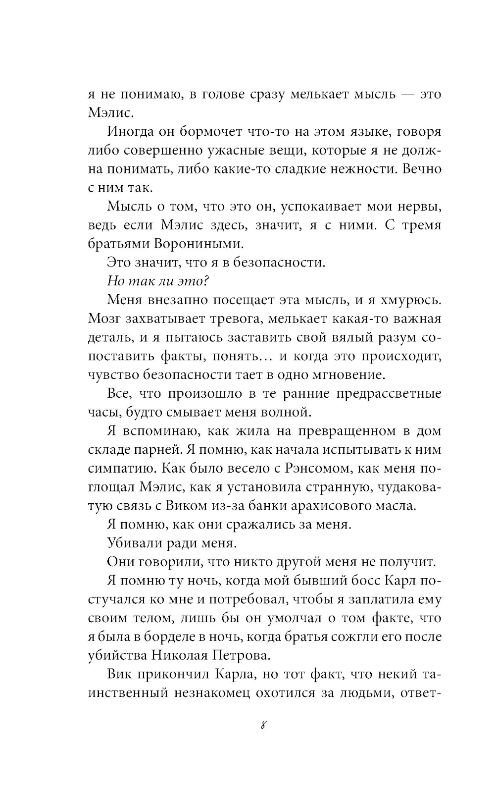 Они завладели моим сердцем, но лишь для того, чтобы его разбить. После долгих лет, проведенных с навязчивым ощущением, что мне нигде нет места, я наконец обрела себя рядом с братьями Ворониными. Я чувствовала себя живой и могла быть настоящей только с ними и... в их постелях. Мэлис, Виктор и Рэнсом показали ту сторону меня, о существовании которой я не подозревала, и помогли мне принять тьму, от которой я так долго пыталась спрятаться. Но все это было иллюзией. Прекрасные дьяволы лгали мне. Использовали меня. И теперь под угрозой не только мое сердце. В опасности и вся моя жизнь.| Издательство | Эксмо |
