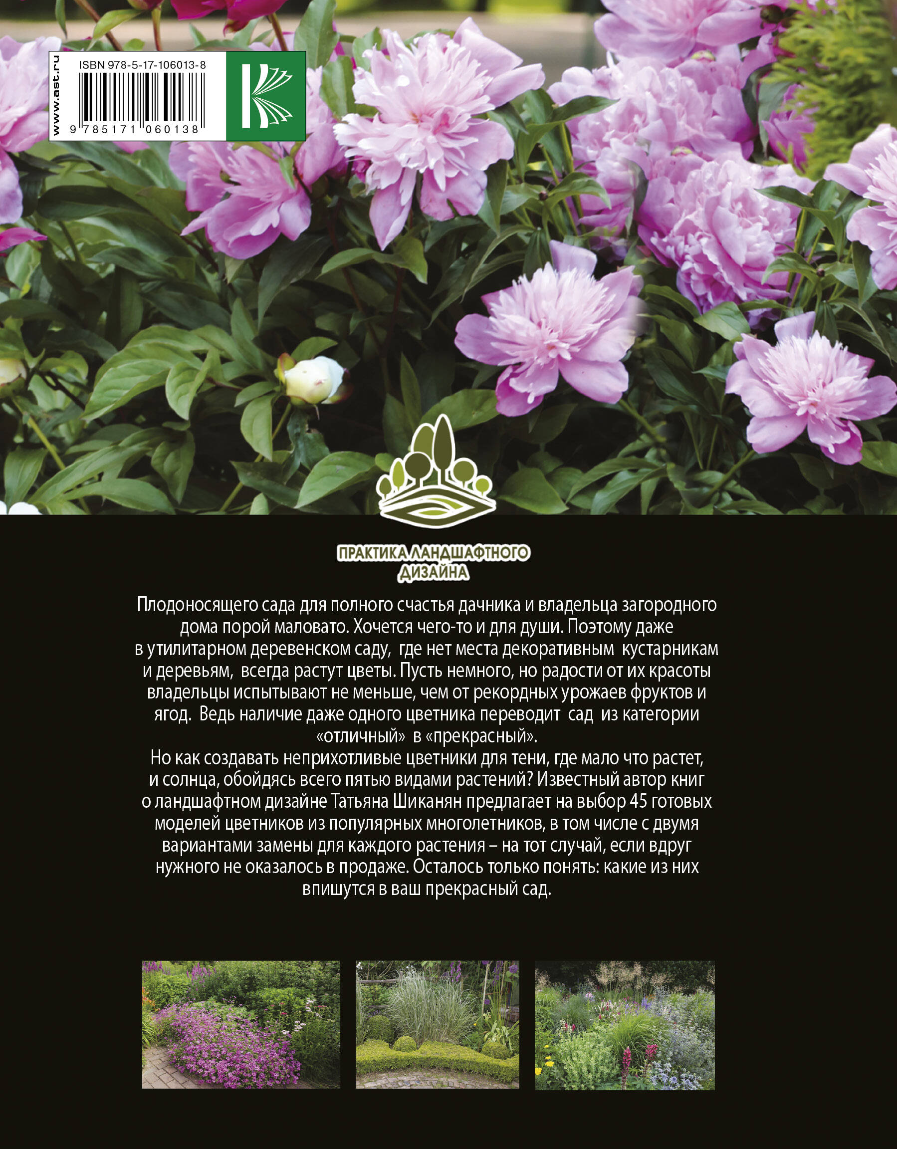 Плодоносящего сада для полного счастья дачника и владельца загородного дома порой маловато. Хочется чего-то и для души. Поэтому даже в утилитарном деревенском саду, где нет места декоративным кустарникам и деревьям, всегда растут цветы. Пусть немного, но радости от их красоты владельцы испытывают не меньше, чем от рекордных урожаев фруктов и ягод. Ведь наличие даже одного цветника переводит сад из категории "отличный" в "прекрасный". Но как создавать неприхотливые цветники для тени, где мало что растет, и солнца, обойдясь всего пятью видами растений? Известный автор книг о ландшафтном дизайне Татьяна Шиканян предлагает на выбор 45 готовых моделей цветников из популярных многолетников, в том числе с двумя вариантами замены для каждого растения - на тот случай, если вдруг нужного не оказалось в продаже. Осталось только понять: какие из них впишутся в ваш прекрасный сад.| Издательство | Издательство "АСТ" |