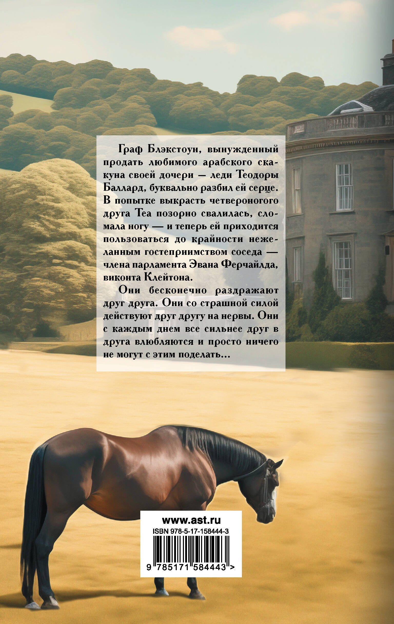 Граф Блэкстоун, вынужденный продать любимого арабского скакуна дочери - леди Теодоры Баллард, буквально разбил ей сердце. В попытке выкрасть четвероногого друга Теа позорно свалилась, сломала ногу - и теперь ей приходится пользоваться до крайности нежеланным гостеприимством соседа - члена парламента Эвана Фэйрчайлда, виконта Клейтона. Они бесконечно раздражают друга. Они со страшной силой действуют друг другу на нервы. Они с каждым днем все сильнее друг в друга влюбляются и просто ничего не могут с этим поделать…| Издательство | Издательство "АСТ" |
