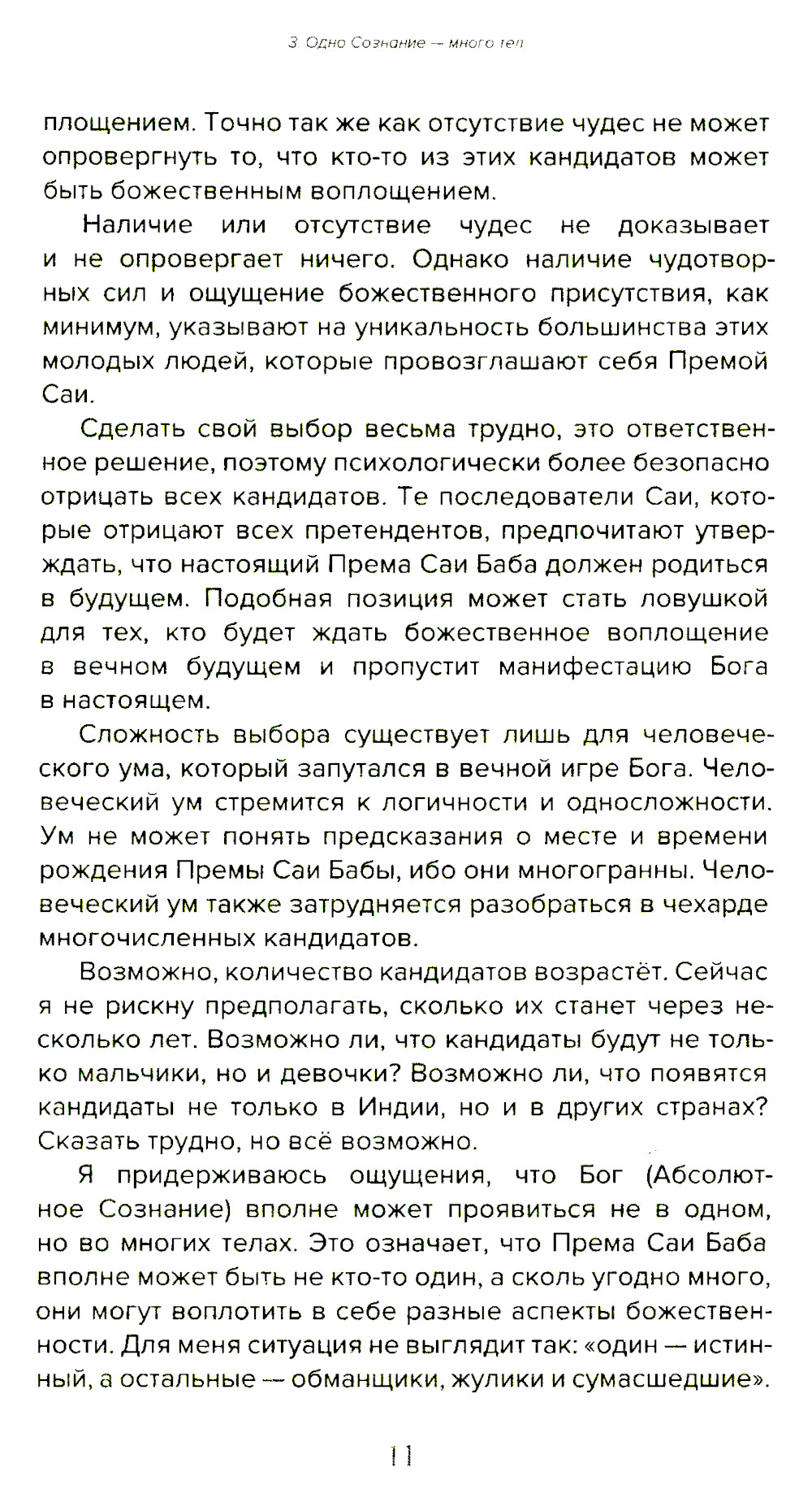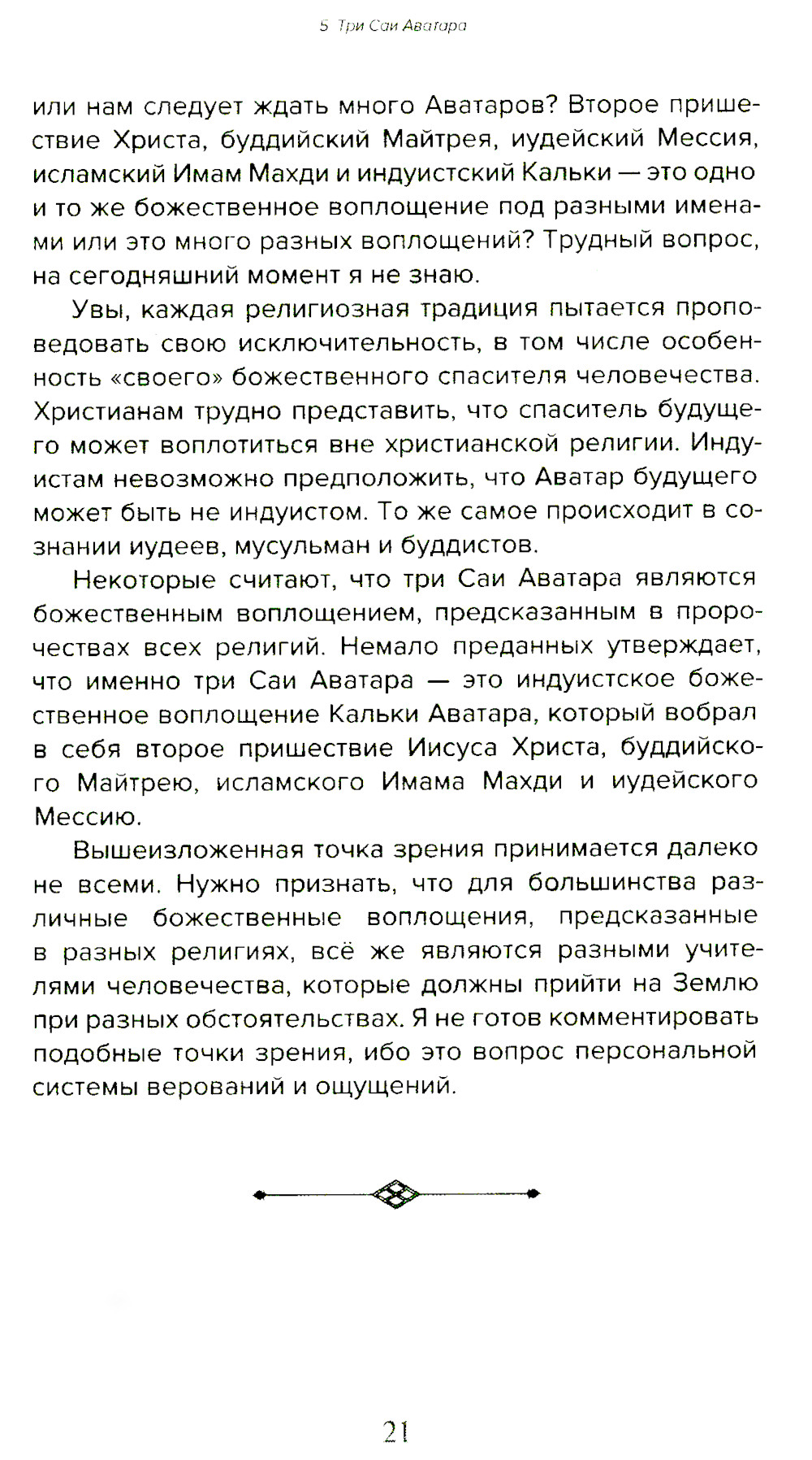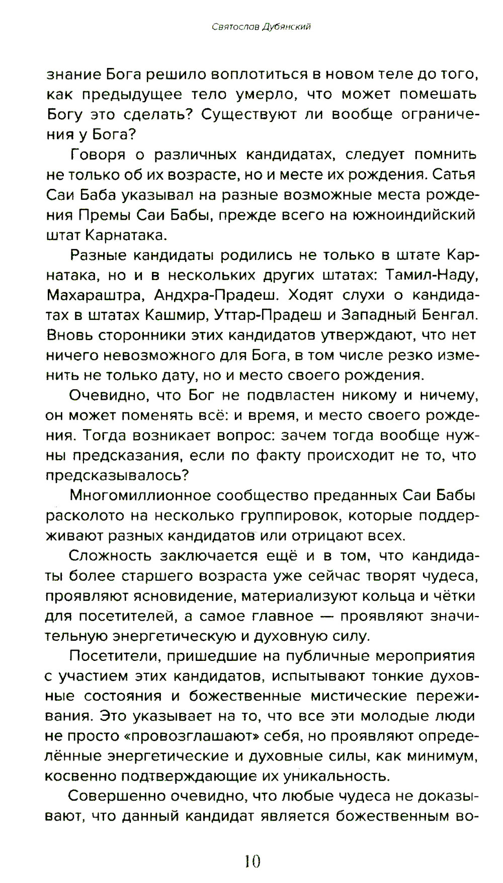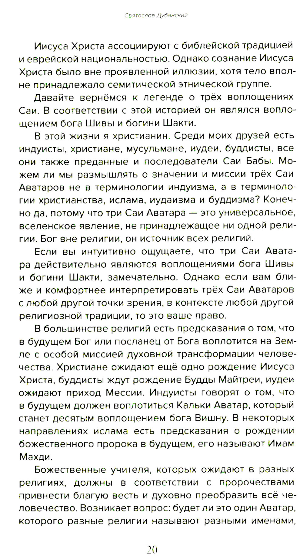 Эта книга посвящена Преме Саи Бабе, божественному воплощению XXI века. Према Саи Баба является третьим воплощением Бога на Земле в нашу эпоху. Первым был Ширди Саи Баба (1835-1918), вторым - Сатья Саи Баба (1926-2011). В самом начале я должен признать всю сложность написания этой книги именно в данный момент. Сейчас 2023 год, предыдущее воплощение Бога, Сатья Саи Баба, покинул физическое тело в 2011 году, то есть 12 лет тому назад. Према Саи Баба родился 28 июня 2012 года, на момент написания этой книги Преме Саи 11 лет. Первый раз я встретился с божественным ребёнком, когда ему было три года. Я посещаю его дом на протяжении восьми лет, наблюдая за каждым днём его детства, ростом и становлением.| Издательство | Книга |