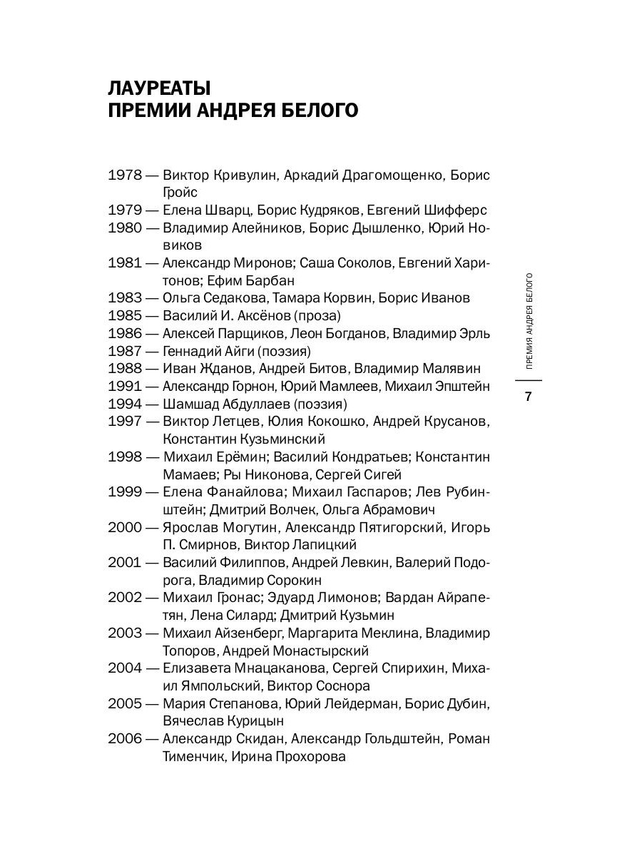 Альманах «Премия Андрея Белого 2011-2012» включает тексты лауреатов премии (А. Поляков, Н. Байтов, Д. Замятин, Е. Петровская, Ю. Валиева, Г. Дашевский, В. Ломакин, М. Гейде, В. Iванiв, А. Ипполитов, П. Арсеньев, Ю. Чайников, А. Волохонский), критические статьи о них, торжественные речи на церемонии вручения премии, библиографические сведения, фотографии и раздел «Архив», посвященный памяти Ю. Новикова и А. Драгомощенко.| Издательство | Т8 RUGRAM |