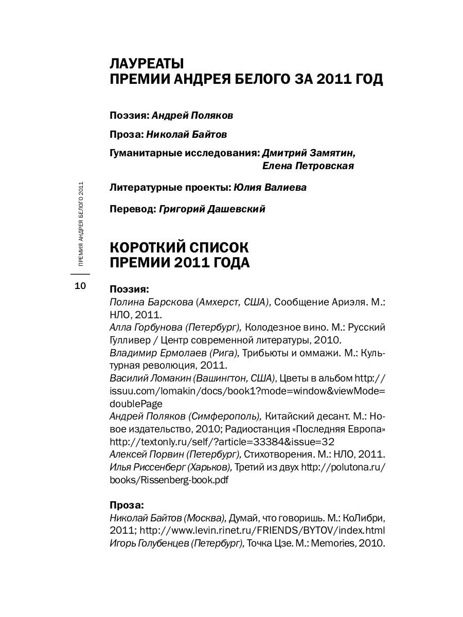 Аннотация: Премия Андрея Белого 2011-2012: альманах