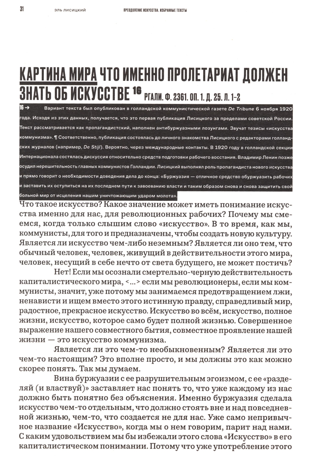 Эль Лисицкий (1890-1941) - художник, архитектор, конструктор и основоположник отечественного графического дизайна. В настоящее издание вошли его теоретические работы о супрематизме, культуре жилья, методах оформления книги, обустройстве выставочных пространств. Лисицкому были подвластны многие виды искусства - живопись, типографика, архитектура, фотомонтаж. В каждом он добивался значительных успехов и в каждое привносил радикальные изменения, разрабатывал новые приемы и техники, определившие искусство XX века. Создавая чертежи горизонтальных небоскребов, проуны, проекты коммунальных жилых ячеек, Лисицкий стремился преодолеть современную ему художественную традицию и утвердить новую культуру, принципы которой излагал в своих текстах-манифестах.| Издательство | Ад Маргинем Пресс |