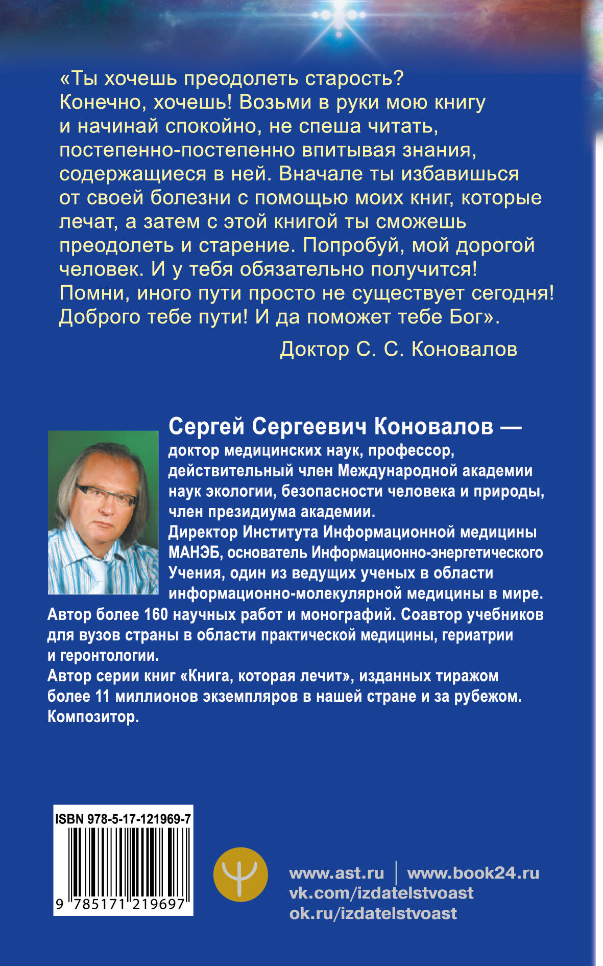 Книга всемирно известного врача, основателя Информационно-энергетического Учения Сергея Сергеевича Коновалова «Преодоление старения. Информационно-энергетическое Учение. Начальный курс» посвящена проблеме старения и преодоления возрастных изменений в организме человека. Рассматривая старение с точки зрения Информационно-энергетического Учения, профессор Коновалов предлагает своим читателям новый путь ухода от возрастных заболеваний и возвращения молодости| Издательство | ИЗДАТЕЛЬСТВО "АСТ" |