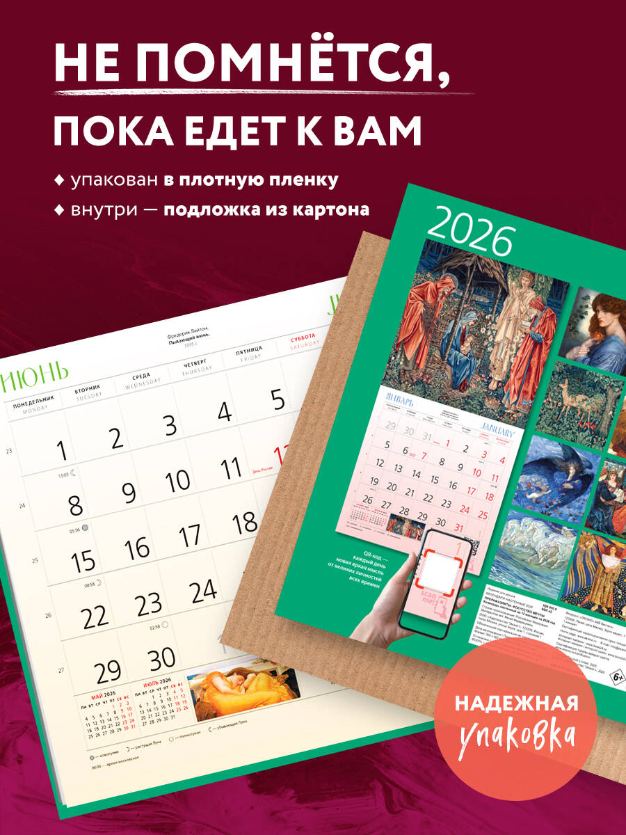 О календаре: В этом настенном перекидном календаре на 2026 год представлены картины художников прерафаэлитов. Календарь достойно украсит интерьер вашего дома или рабочего места. А календарный блок напомнит о важных событиях года. В центре календаря помещен большой арт-постер, который может стать отдельным декоративным украшением интерьера. О серии: Наши настенные календари отличаются высоким качеством исполнения! Тщательно подобранные иллюстрации, напечатанные на глянцевой бумаге высочайшего качества, станут настоящим украшением дома, а в календарной сетке найдется место для ваших планов: большие клетки позволят делать записи и организовать свой год! В календаре также отмечены все государственные праздники. В серии настенных календарей издательства «ЭКСМО» каждый найдет тему по вкусу: великие художники, великолепные подборки с самыми знаменитыми произведениями искусства, легендарные кинематографические саги и игры, главные книжные авторы и бестселлеры, фотографии и иллюстрации любимых животных и многое-многое другое! Для кого: Высокое качество полиграфического исполнения прекрасно дополняет репродукции шедевров живописи, что непременно будет по достоинству оценено людьми с хорошим вкусом. Технические параметры: - Тип календаря - настенный перекидной. - Год - 2026. - Календарная сетка - с разбивкой по месяцам. - Вид скрепления - скрепка. - Ширина - 30 см. - Высота - 30 см. - Внутренний блок - мелованная бумага 115 г/м2. - Подложка - плотный гофрокартон для поддержания формы. - Индивидуальная упаковка в плотный целлофановый пакет.| Издательство | ООО "Издательство "Эксмо" |