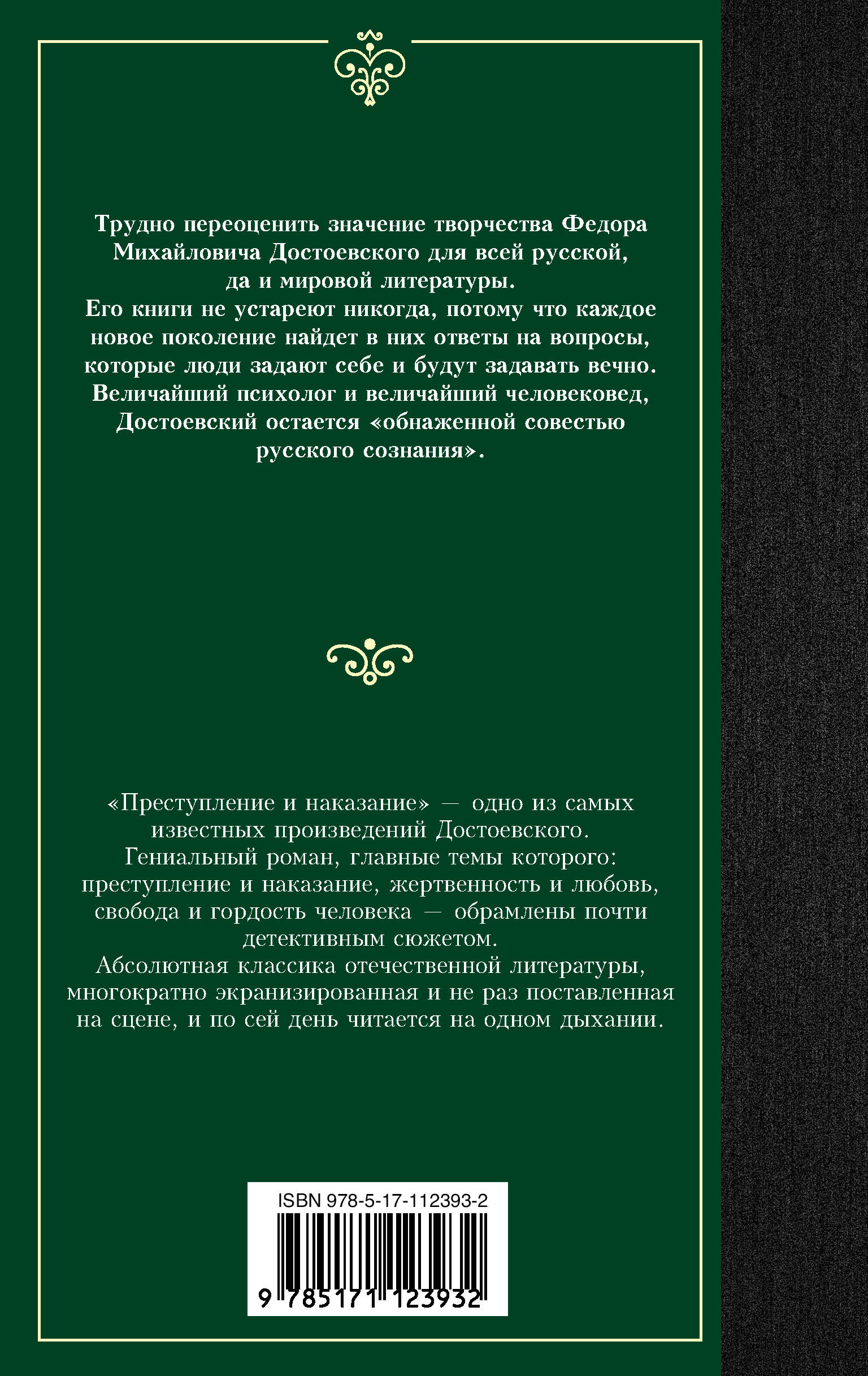 "Преступление и наказание" - одно из самых известных произведений Достоевского. Гениальный роман, главные темы которого: преступление и наказание, жертвенность и любовь, свобода и гордость человека - обрамлены почти детективным сюжетом. Абсолютная классика отечественной литературы, многократно экранизированная и не раз поставленная на сцене, и по сей день читается на одном дыхании.| Издательство | ИЗДАТЕЛЬСТВО "АСТ" |