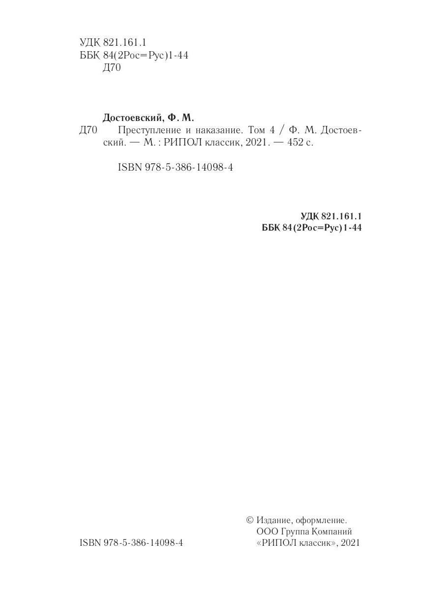 Фёдор Михайлович Достоевский (1821-1881) - великий русский писатель, один из лучших романистов-классиков, мыслитель, философ и публицист, творчество которого оказало воздействие на мировую литературу. В четвёртый том "Собрания сочинений" вошел роман "Преступление и наказание"