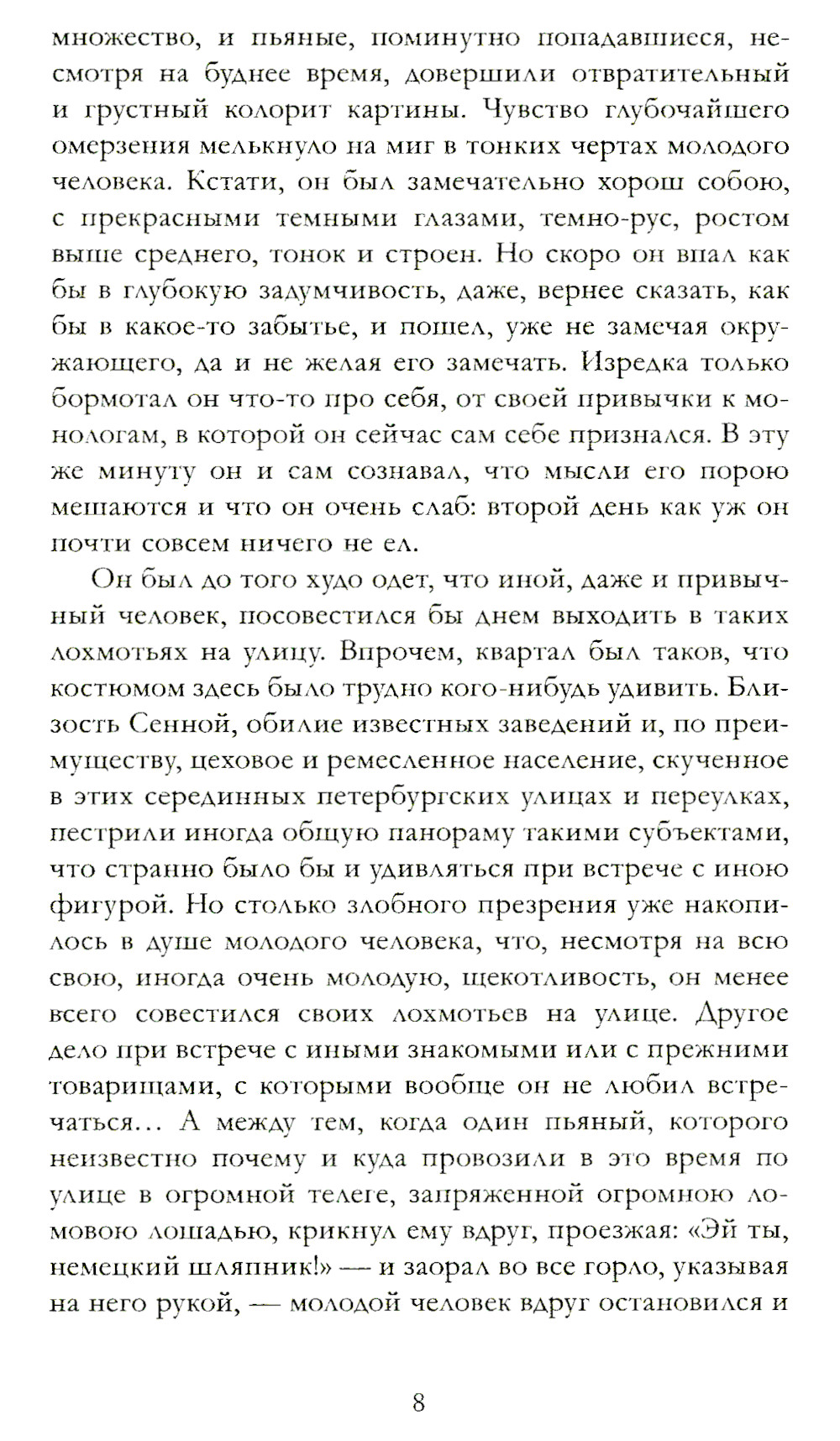 Социально-психологический роман «Преступление и наказание» признан шедевром в мировой и русской литературе и остается актуальным произведением, включенным во все школьные и университетские программы. История студента Родиона Раскольникова экранизировалась более двадцати пяти раз. Задуманный как «психологический отчет одного преступления», роман Достоевского предстает грандиозным художественно-философским исследованием человеческой природы, которое ставит перед читателем важнейшие нравственно-мировоззренческие вопросы - о вере, совести, грехе, выборе и об искуплении через страдание.