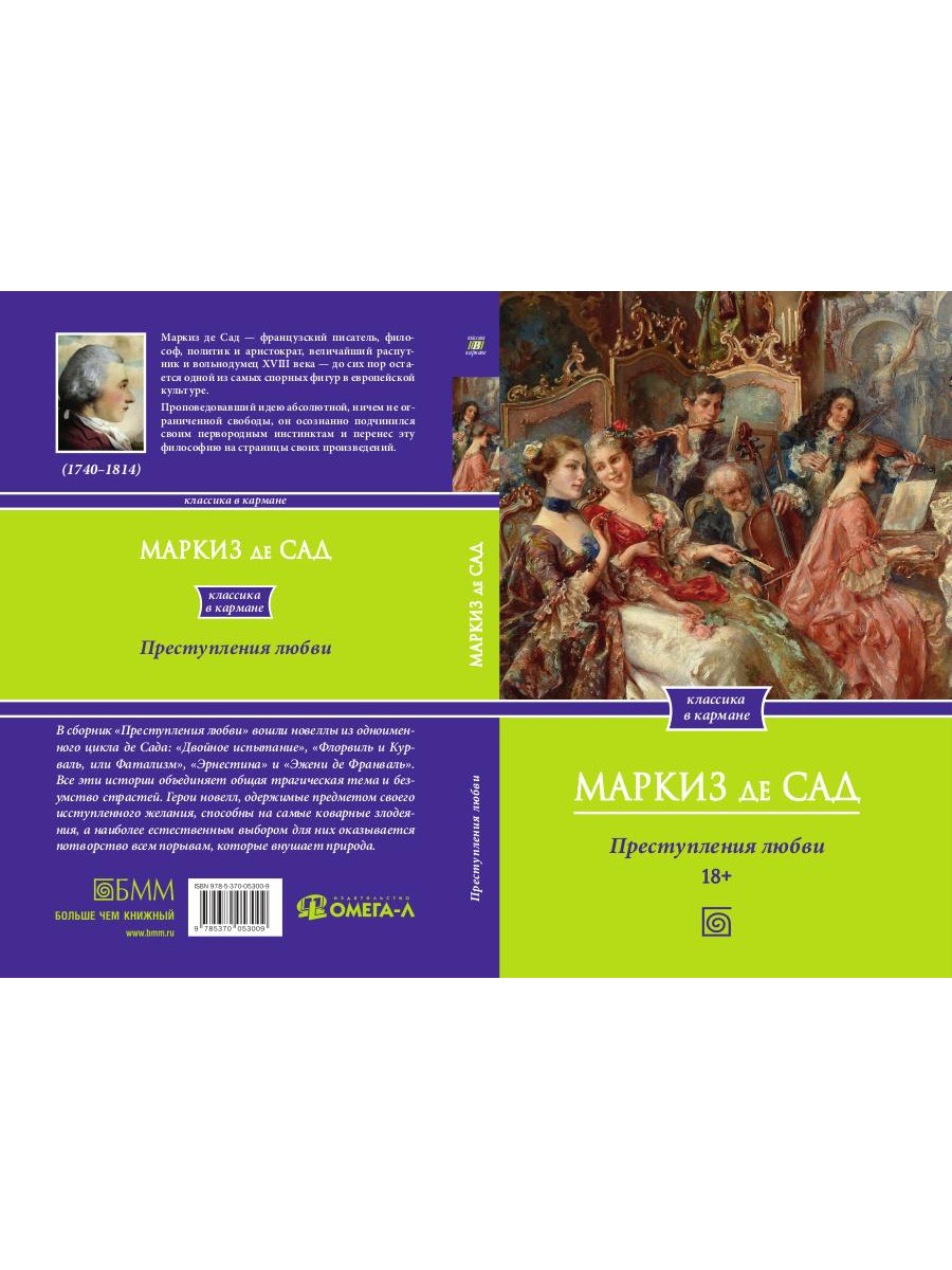 Каким является человек, живущий идеей абсолютной свободы? И какими становятся люди, не ограниченные нравственностью и законами? Французский мыслитель, вольнодумец и скандальный писатель Маркиз де Сад - человек не бездумно поддавшийся пороку, а осознанно подчинившийся своим первородным инстинктам и перенесший эту философию на страницы своих произведений. В сборник "Преступления любви" вошли новеллы из одноименного цикла де Сада: "Двойное испытание", "Флорвиль и Курваль, или Фатализм", "Эрнестина" и "Эжени де Франваль". Все эти истории объединяет общая трагическая тема и безумство страстей. Герои новелл, одержимые предметом своего исступленного желания, способны на самые коварные злодеяния, а самой естественной вещью для них оказывается - уступать всем порывам, которые внушает природа.| Издательство | Омега-Л |