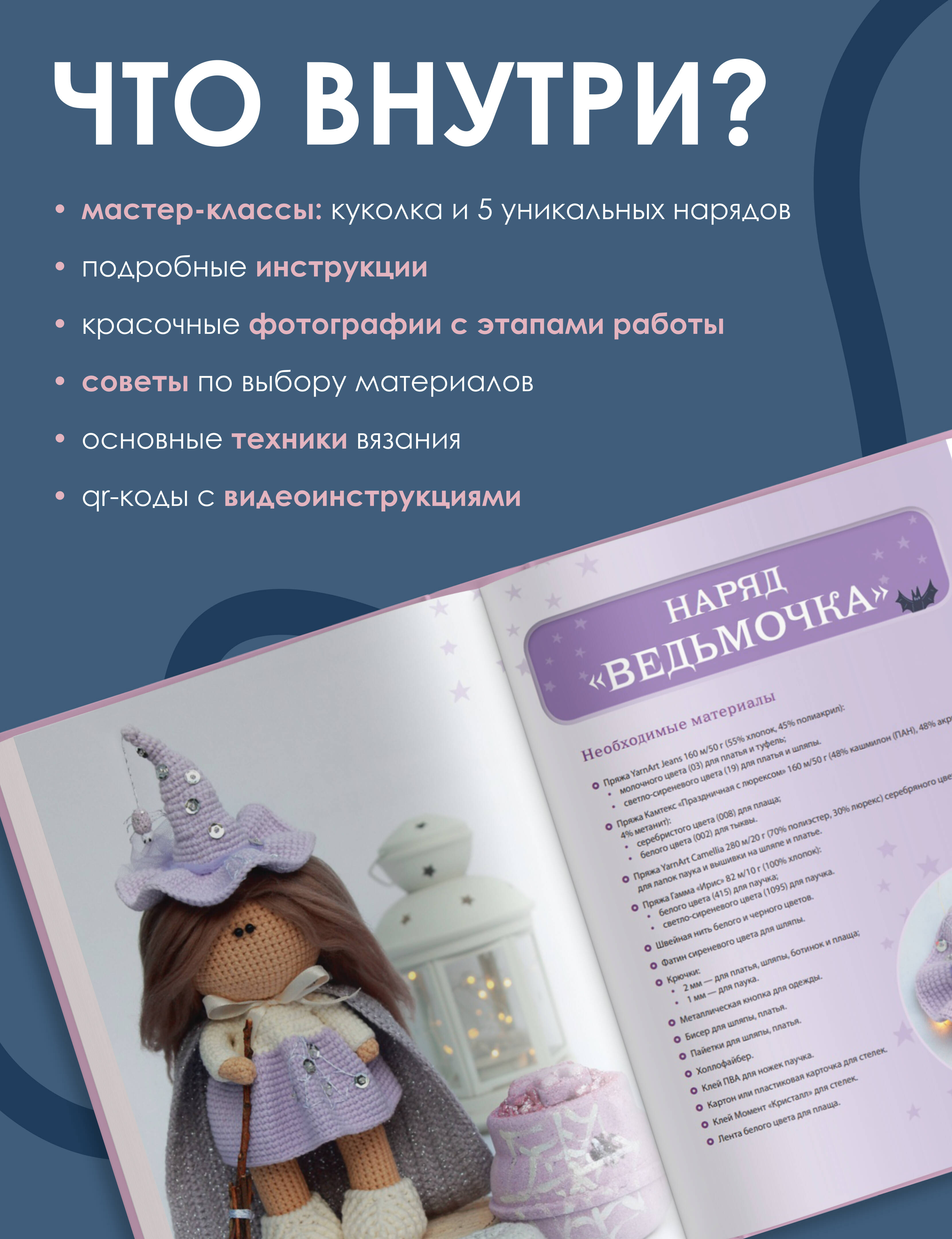 Наталья Калашникова - блогер, мастер по вязанию кукол и игрушек амигуруми крючком. В книге вы найдете авторские мастер-классы по вязанию куклы Крошки Лу и пяти нарядов для нее. Кто она сегодня: милая ведьмочка, очаровательная зайка, новогодняя гномушка, нежная зефирка или счастливая именинница, которая собирается на день рождения? Решать только вам! Подробное описание, пошаговые фото и ссылки на видеоуроки помогут вам создать уникальную куклу! Вы узнаете, как: • выбрать пряжу и крючок; • правильно набить игрушку; • пришить или вставить глазки; • завершить вязание деталей; • сделать каркас; • пришить волосы, сделать паричок и многое другое. У вас все получится, даже если вы никогда не вязали! Поверьте, что все возможно, и погрузитесь в мир творчества и волшебства!