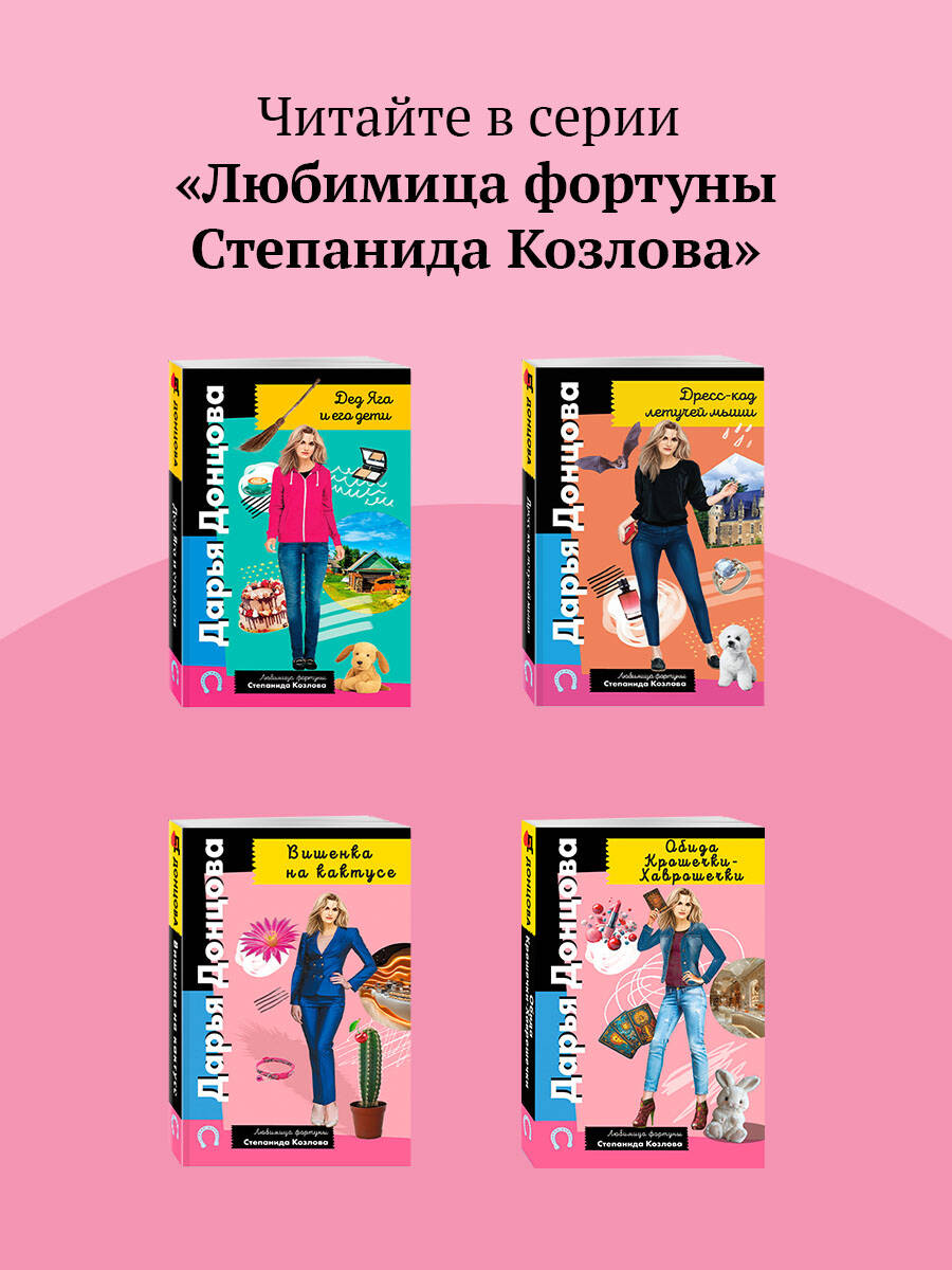 Да уж, такого кролика язык не повернется назвать «зайка моя»! Некто в веселом рекламном костюме, помахивая длинными мохнатыми ушами, ворвался в бутик «Бак» и открыл огонь из пистолета. А следом за «косым» в магазин забежал очаровательный «утенок» с лимонно-желтым клювом и направил оружие на одну из покупательниц. Милые «зверушки» грабили магазин непринужденно, но в строгом соответствии с законами вооруженного налета. Просто чудо, что Степанида Козлова, ставшая свидетельницей ограбления, не схлопотала пулю. Очнулась Степа в больнице, где узнала, что во время налета получила травмы кассирша Наталья Сытина и умерла одна из покупательниц. Козловой показалось крайне странным, что бутик решили ограбить в полдень, когда в кассе почти не было выручки. Ее подозрения усилились после того, как она увидела Сытину с перебинтованной головой и фингалом под глазом. Опытный стилист Козлова сразу определила, что синяк - имитация, нарисован с помощью грима. Но это были только цветочки… Дарья Донцова - самый популярный и востребованный автор в нашей стране, любимица миллионов читателей. В России продано более 200 миллионов экземпляров ее книг. Детективы Дарьи Донцовой написаны в особой манере: помимо интереснейшего сюжета, в них всегда присутствует тонкий юмор, здравый оптимизм и безусловная вера в торжество добра над злом. Это всё, что нужно для отдыха, релаксации и душевного успокоения. Прочтите книги Дарьи, и ваши сердца и души наполнятся светом, оптимизмом, радостью, уверенностью в завтрашнем дне! Они заразят вас желанием жить, радоваться каждому дню и верить в лучшее. -------------------------------------------------- «Донцова невероятная работяга! Я не знаю ни одного другого писателя, который столько работал бы. Я отношусь к ней с уважением, как к образцу писательского трудолюбия. Женщины нуждаются в психологической поддержке и получают ее от Донцовой. Я и сама в свое время прочла несколько романов Донцовой. Ее читают очень разные люди. И очень занятые бизнес-леди, чтобы на время выключить голову, и домохозяйки, у которых есть перерыв 15-20 минут между отвести-забрать детей». - Галина Юзефович, литературный критик «У Дарьи вся детективная закваска всего лишь фон для раскрытия характеров, взаимоотношений между людьми. Всегда есть интрига, и до последнего эпизода непонятно, что, как и почему. В этом смысле условия жанра абсолютно выполняются. Дарья Донцова, конечно, одна из лучших». - Дмитрий Харатьян «Давно начала читать, и так втянулась! И сейчас читаю романы Дарьи. Я отдыхаю за ними. Сама Донцова интеллигентная женщина, у нее мягкий юмор и нестрашный сюжет, все с позитивом и надеждой на хороший конец. Это прекрасно». - Лариса Удовиченко| Издательство | ООО "Издательство "Эксмо" |