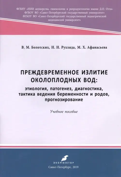 В учебно-методическом пособии представлены современные взгляды на этиологию и патогенез преждевременного излития околоплодных вод, а также рассмотрены варианты диагностики, прогнозирования и профилактики данной патологии. На основании результатов исследований, проведенных в ФГБНУ "НИИ акушерства, гинекологии и репродуктологии им. Д.О. Отта", предложены методы ведения беременности и родов при преждевременном излитии околоплодных вод. Учебно-методическое пособие предназначено врачам акушерам-гинекологам, клиническим ординаторам, врачам-интернам, аспирантам и студентам старших курсов медицинских вузов.