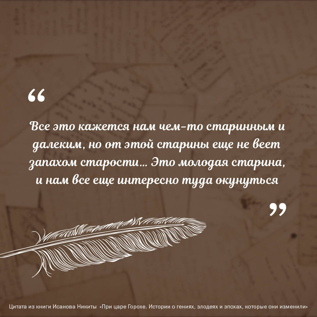 Перед вами книга историка, автора подкаста «При царе Горохе» Никиты Исанова. События, о которых пойдет речь в книге, относятся к XIX веку - веку великих открытий, потрясений и преступлений. Как профессиональный историк, в своем исследовании автор опирается, в первую очередь, на исторические факты и труды других ученых; а свидетельства очевидцев и воспоминания участников событий той эпохи делают рассказ живым и увлекательным. Из книги «При царе Горохе» вы узнаете: • Из-за чего произошёл Московский пожар 1812 года • Кого любил Пушкин • Как началась золотая лихорадка в Сибири • Тайны картин передвижников • Почему русские продали Аляску • Тайну смерти Петра Чайковского Эти и еще множество других загадочных событий XIX века вы найдете в книге Никиты Исанова «При царе Горохе».| Издательство | ИЗДАТЕЛЬСТВО "АСТ" |
