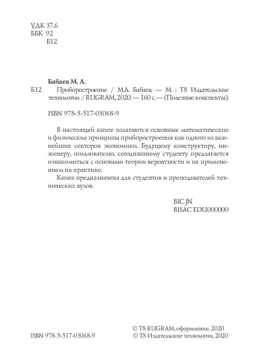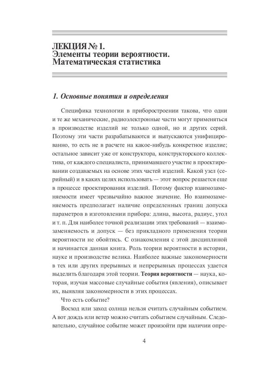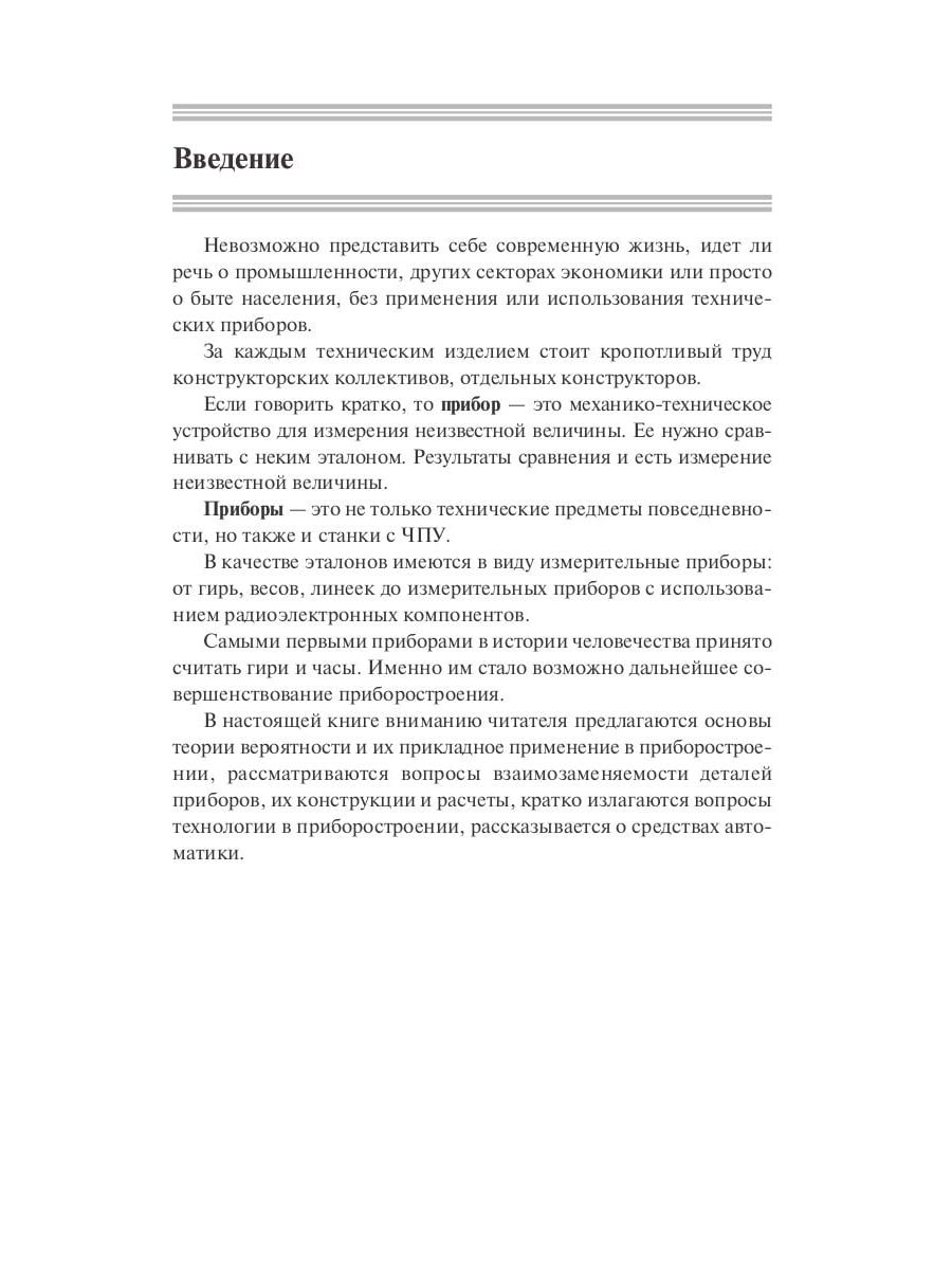 В настоящей книге излагаются основные математические и физические принципы приборостроения как одного из важнейших секторов экономики. Будущему конструктору, инженеру, пользователю, сегодняшнему студенту предлагается ознакомиться с основами теории вероятности и их применением на практике. Книга предназначена для студентов и преподавателей технических вузов.