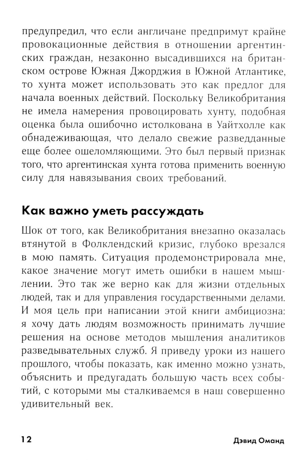 Из этой книги вы не узнаете, как раскапывать грязные тайны диктаторов, ловить торговцев оружием или перевозить через границу секретные донесения. Дэвид Оманд, в прошлом высокопоставленный сотрудник британской спецслужбы, рассказывает о главном навыке разведчика - принимать верные решения на основании ограниченной, неполной, а иногда и просто недостоверной информации. Из его книги вы узнаете, что делать, когда у вас нет времени проверить факты, как научиться не поддаваться панике, не впадать в ступор, верно оценивать риски, игнорировать теории заговора и выводить на чистую воду лжецов и манипуляторов. В основе авторского метода работы с информацией - многолетний опыт разведчиков и аналитиков разных стран, отточенный во время таких событий, как война на Фолклендах или Карибский кризис. Отдельные главы книги посвящены ведению переговоров и установлению доверительных отношений в различных обстоятельствах.| Издательство | Альпина Паблишер |