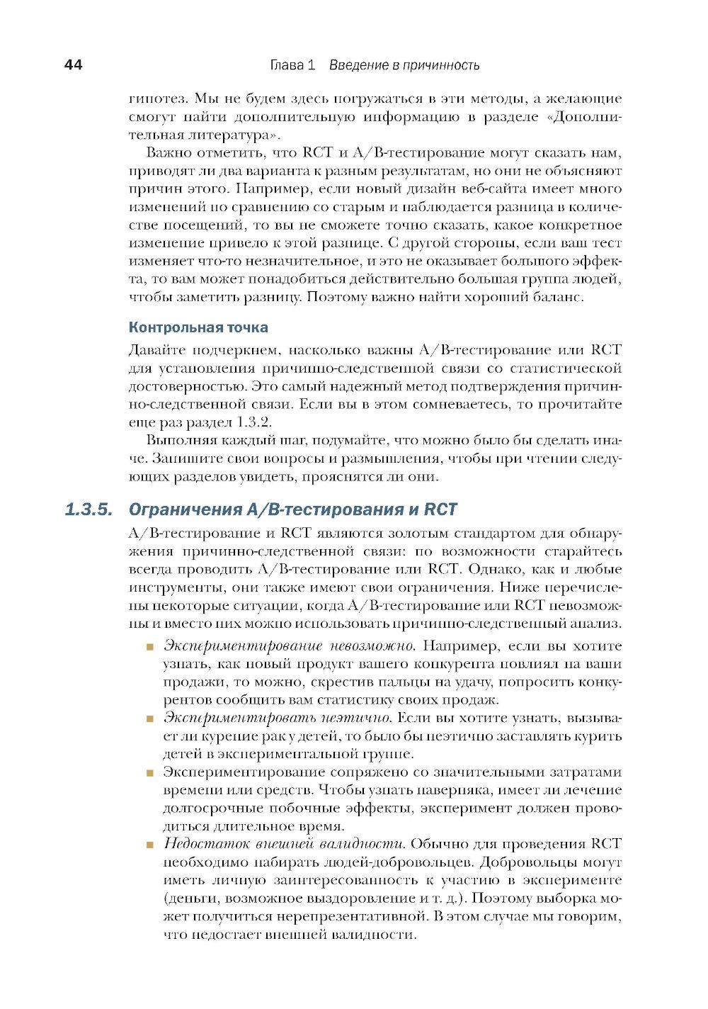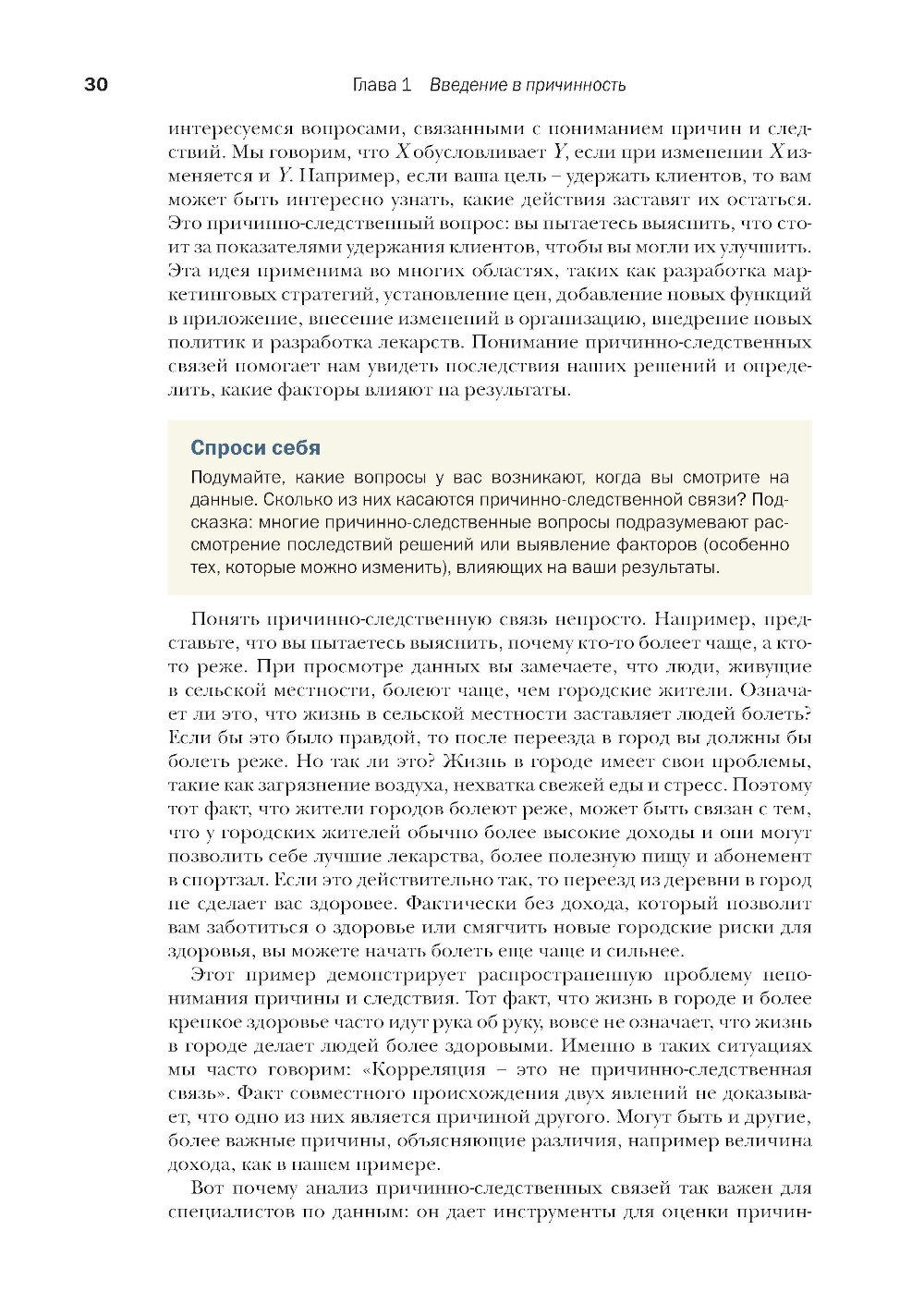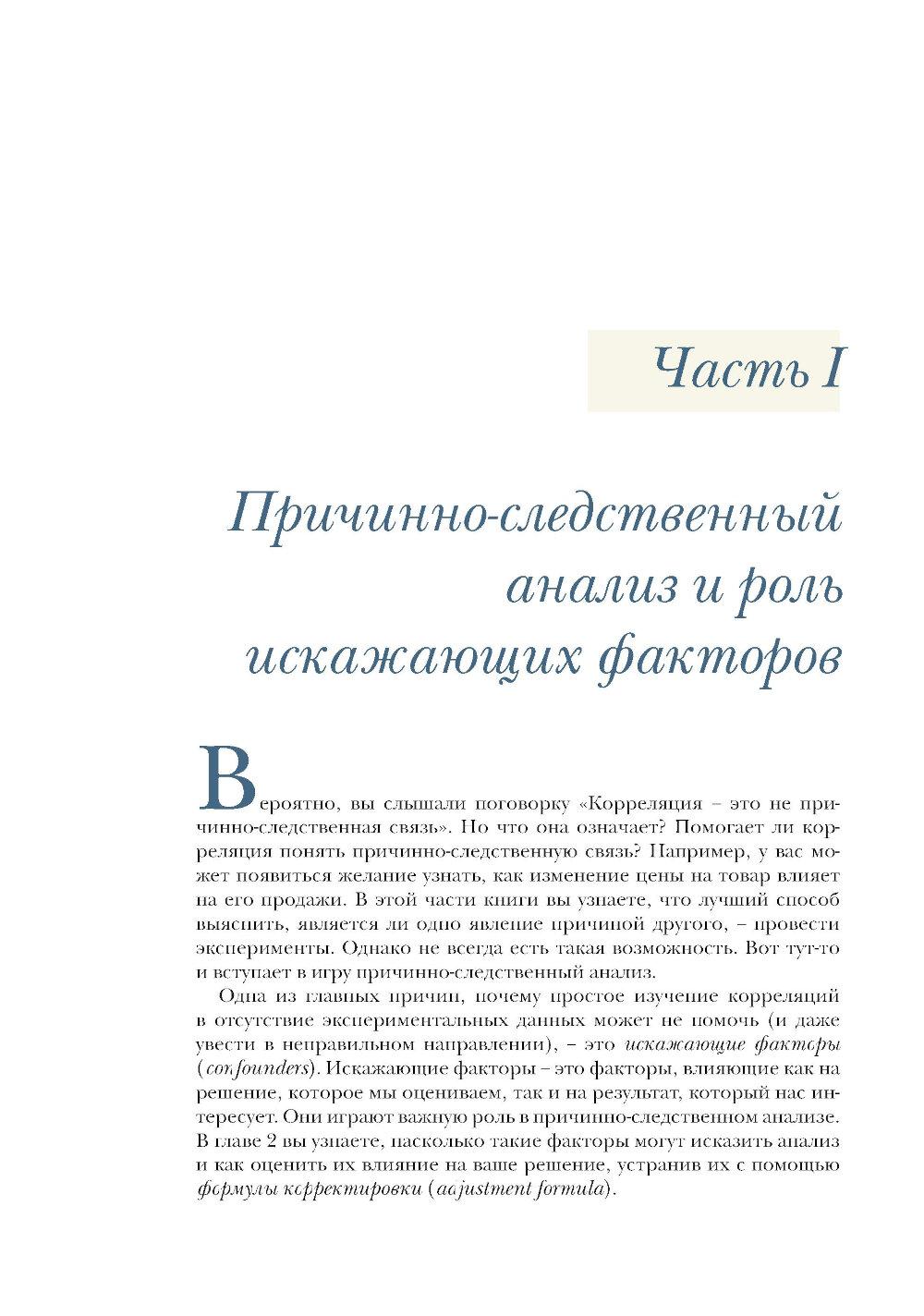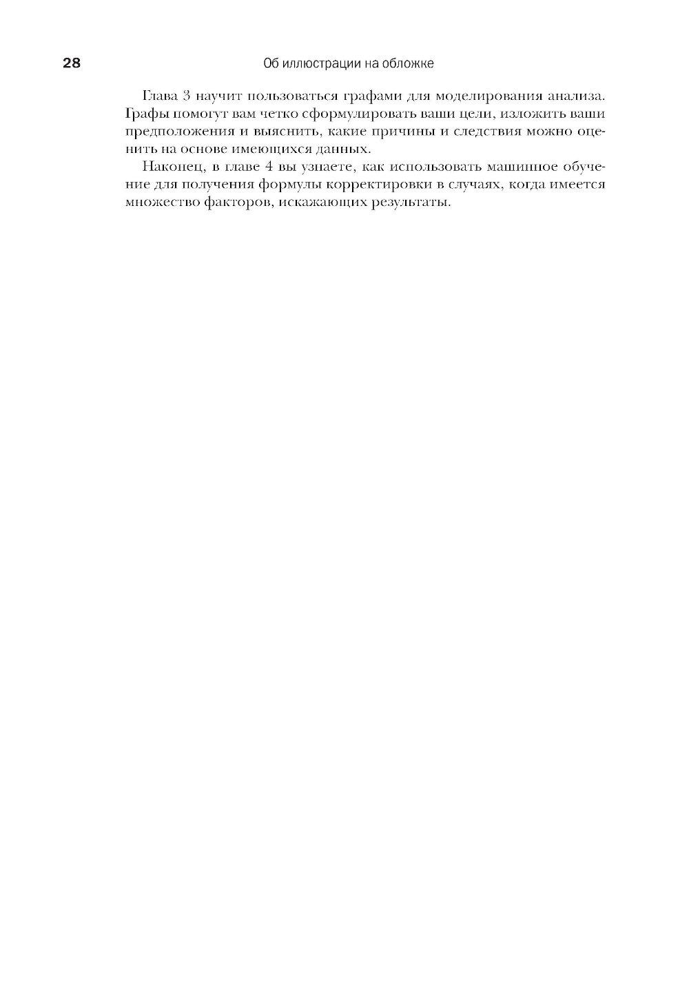 Почему получается тот или иной результат? Что могло бы привести к другому итогу? Это важнейшие вопросы причинно-следственного анализа - мощной методики, улучшающей качество решений за счет связывания причины и следствия, даже если нет возможности проводить эксперименты, А/В-тестирование или дорогостоящие контролируемые испытания. Книга знакомит с приемами причинно-следственного анализа в обычных бизнес-сценариях. Вы научитесь применять подход на основе ориентированных ациклических графов, не требующий знания сложного статистического или математического аппарата. Основные темы: - стратегия выбора правильных подходов к анализу данных; - оценка целей, предположений, рисков и ограничений; - применение причинно-следственного анализа для исследования бизнес-данных. Издание предназначено для специалистов по обработке данных, инженеров по машинному обучению и статистике.| Издательство | ДМК Пресс |