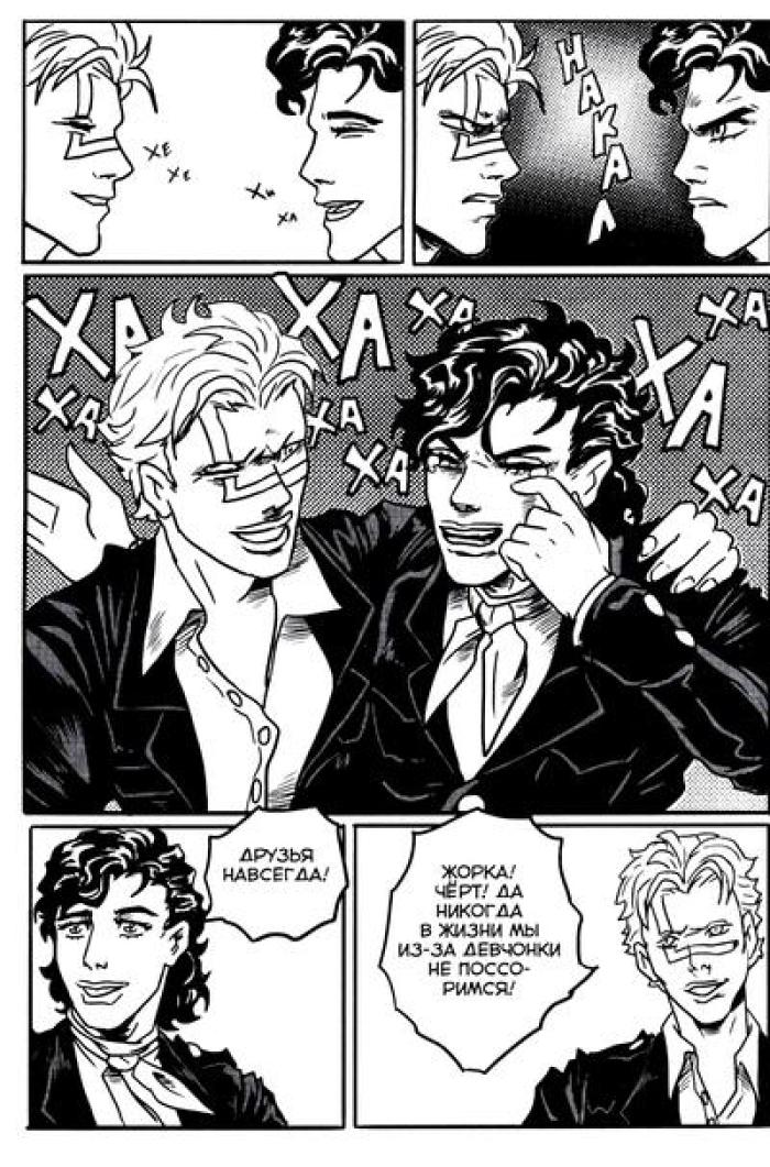 Долгожданное продолжение додзинси-хита про Жожо в России! Виталий Терлецкий и Кирилл Черкай сделали это снова! 1993 год. Георгий Жодин-старший и Дмитрий Брандов были лучшими друзьями в школе, но теперь их пути разошлись, Жодин представляет закон, тогда как Брандов свернул на кривую дорожку организованной преступности... Лихие девяностые, дружба и предательство, хотели бы мы сказать, что там будут кассеты и кэпсы, но нет, будут наручники и пистолеты, малиновые пиджаки и спортивные костюмы, рэкетиры и маньяки. ЭТО НОВАЯ ЗАКОНЧЕННАЯ ИСТОРИЯ, её можно читать, даже если вы не читали прошлую книжку.| Издательство | Терлецки Комикс |