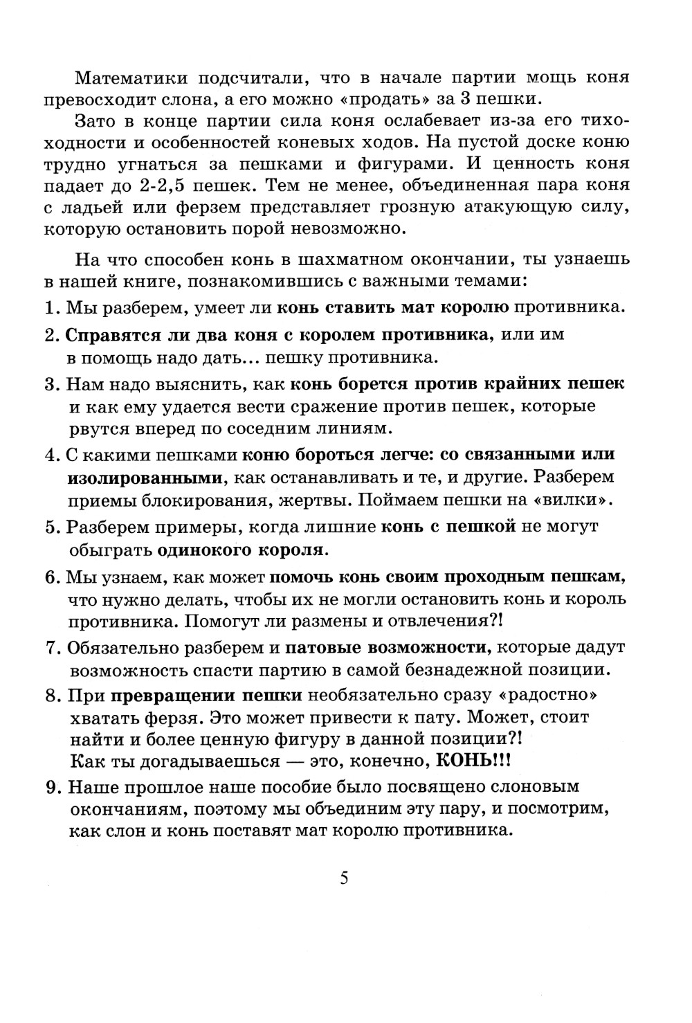 На что способен конь в шахматном окончании? Многие дети не любят коней и стараются побыстрей разменять их в начале партии. Думаем, что наша книга изменит твое мнение о конях, когда ты узнаешь, на что способна эта горделивая фигура! Ты научишься ставить мат конем королю противника, хотя многие считают, что это невозможно... Мы покажем, как бороться конем против вражеских проходных пешек и помогать своим. Мы научим тебя спасаться в самых безнадежных ситуациях, разберем, когда выгодно превращать пешку в коня. Ты овладеешь различными тактическими приемами борьбы в коневых окончаниях и станешь настоящим джигитом на шахматной доске. Данное издание состоит из учебной части, где подробно объясняются типовые приемы борьбы и идеи в коневых окончаниях, и практикума, включающего более 200 задач и этюдов. Книга предназначена для юных шахматистов (III-I разрядов), желающих повысить свое мастерство разыгрывания коневых окончаний, а так же тренеров, руководителей шахматных кружков и всех любителей шахмат.| Издательство | Изд.Калиниченко |