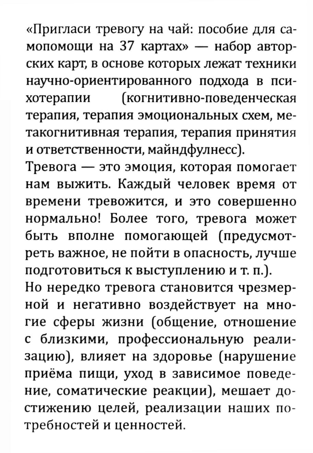 Аннотация: Пригласи тревогу на чай: пособие по самопомощи на 37 картах + руководство