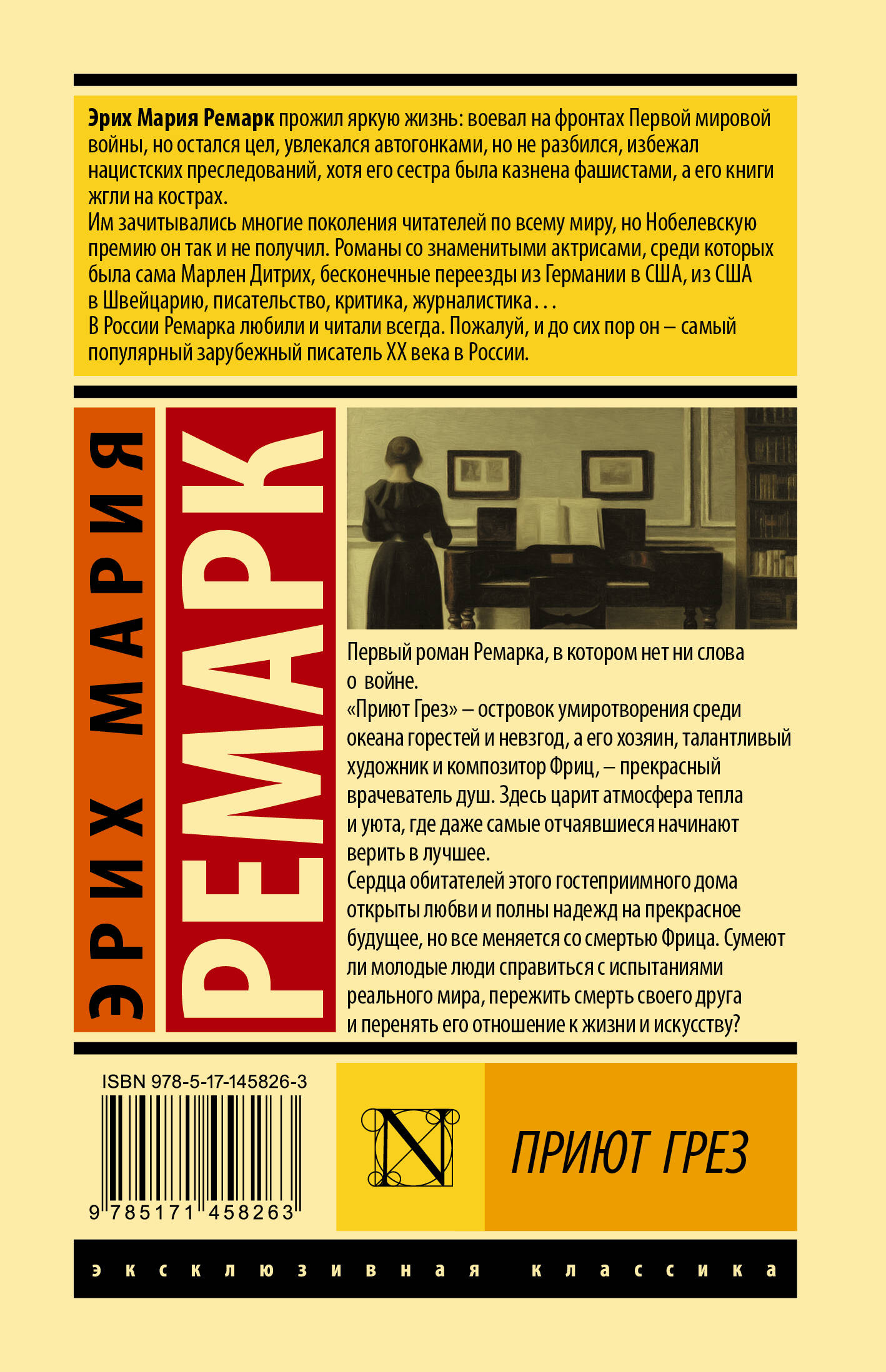 Первый роман Ремарка, в котором нет ни слова о войне. "Приют Грез" - островок умиротворения среди океана горестей и невзгод, а его хозяин, талантливый художник и композитор Фриц - прекрасный врачеватель душ. Здесь царит атмосфера тепла и уюта, где даже самые отчаявшиеся начинают верить в лучшее. Сердца обитателей этого гостеприимного дома открыты любви и полны надежд на прекрасное будущее, но все меняется со смертью Фрица. Сумеют ли молодые люди справиться с испытаниями реального мира, пережить смерть своего друга и перенять его отношение к жизни и искусству?| Издательство | ИЗДАТЕЛЬСТВО "АСТ" |