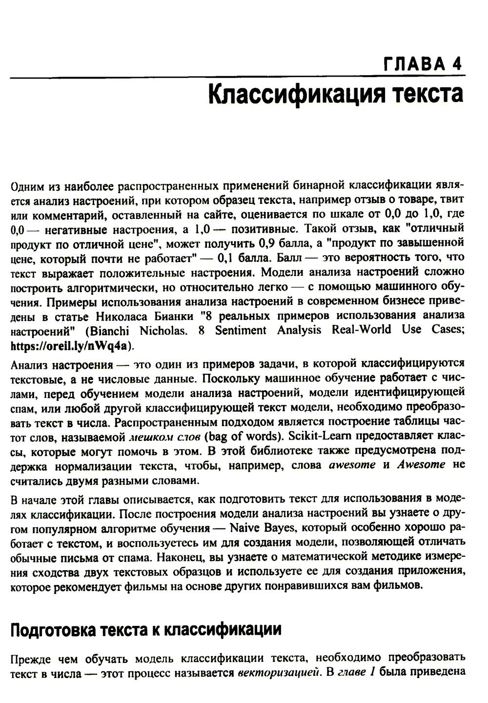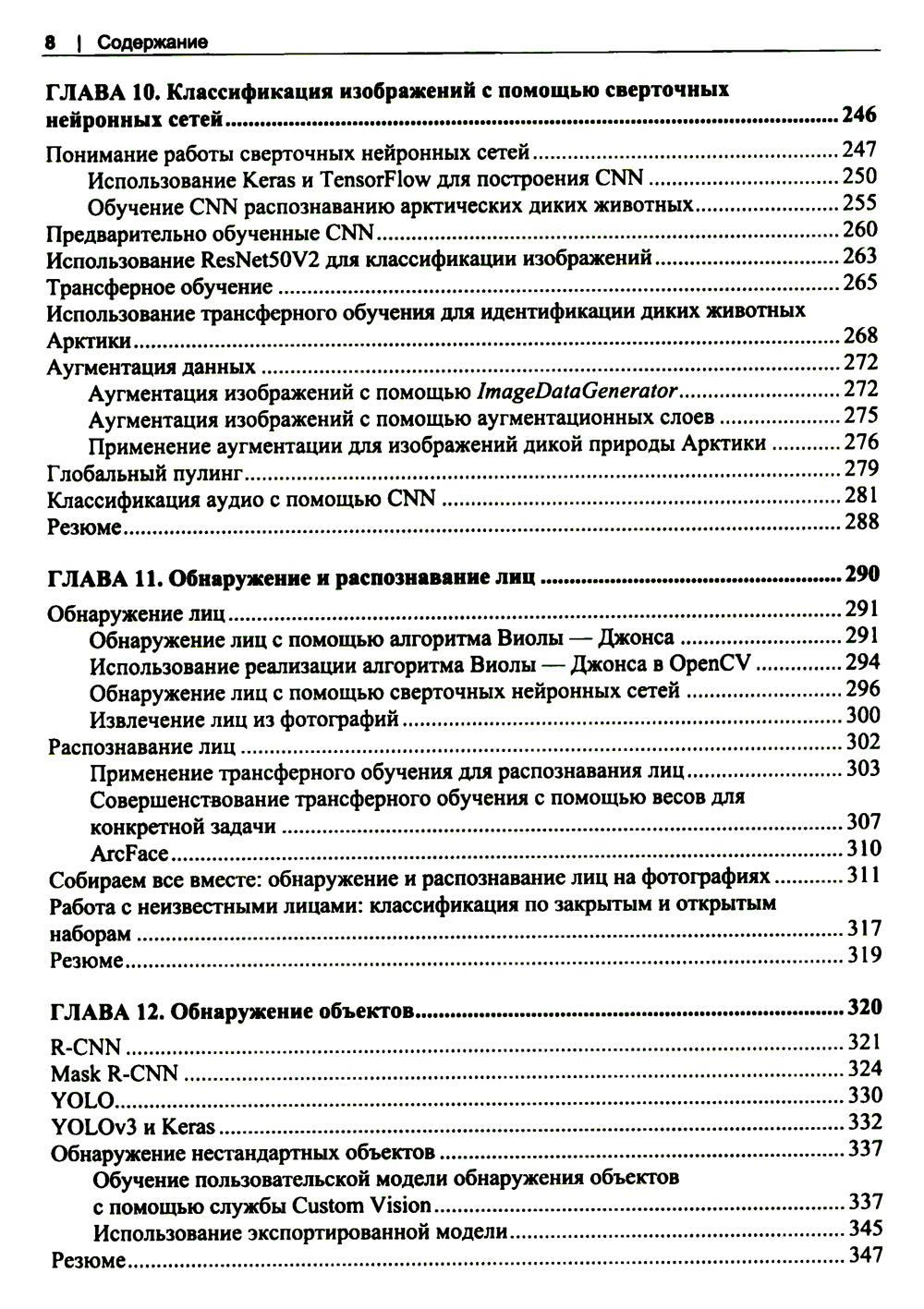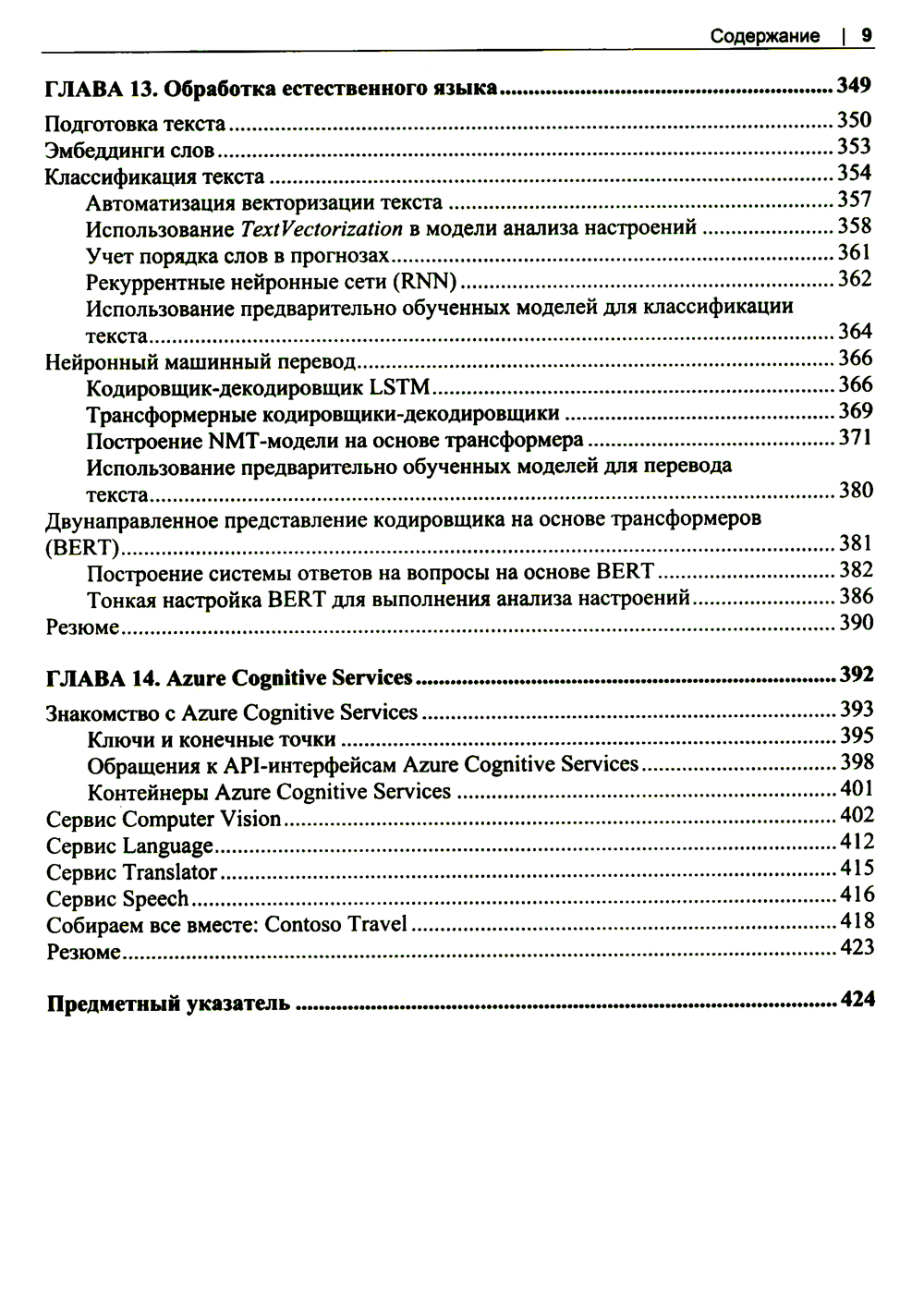 Книга рассказывает о применении искусственного интеллекта и машинного обучения в бизнесе и инженерной практике. Подробно описаны популярные алгоритмы машинного обучения и разъяснено, когда их целесообразно использовать. Приведены примеры построения моделей машинного обучения на языке Python с помощью библиотеки Scikit-Learn, а также создания нейронных сетей посредством библиотек Keras и TensorFlow. Изложены базовые принципы и способы оценки регрессионных моделей, моделей бинарной и многоклассовой классификации. Показаны примеры создания модели распознавания лиц и обнаружения объектов, языковых моделей, отвечающих на естественно-языковые вопросы и переводящих текст на другие языки. Рассмотрено использование набора облачных API Cognitive Services для внедрения ИИ в различные приложения.| Издательство | АЛИСТ |
