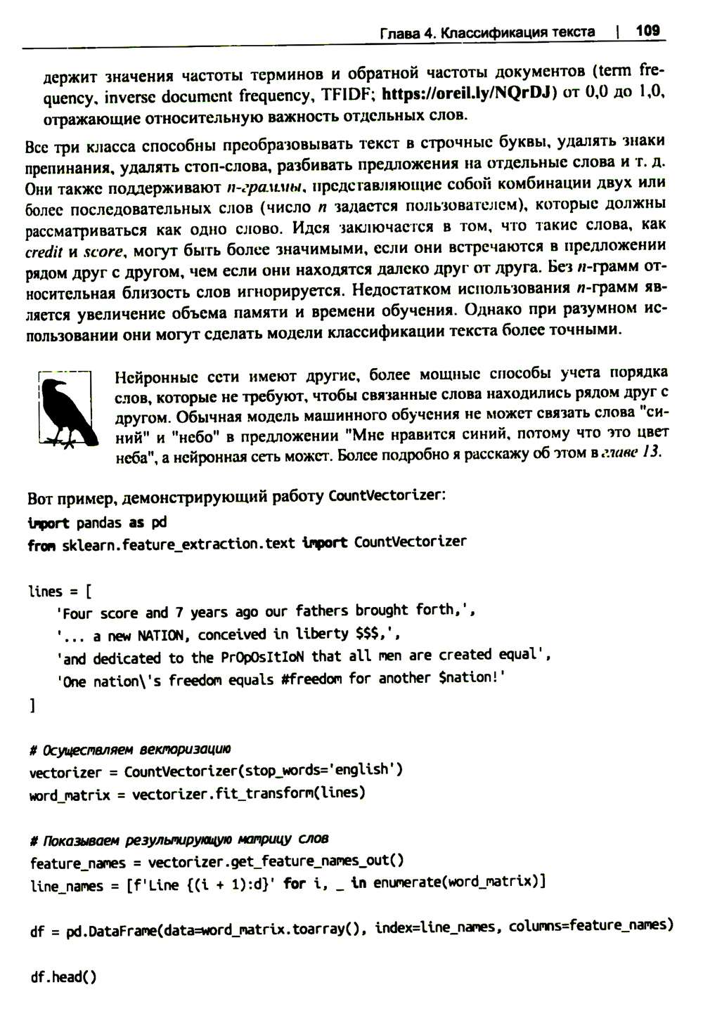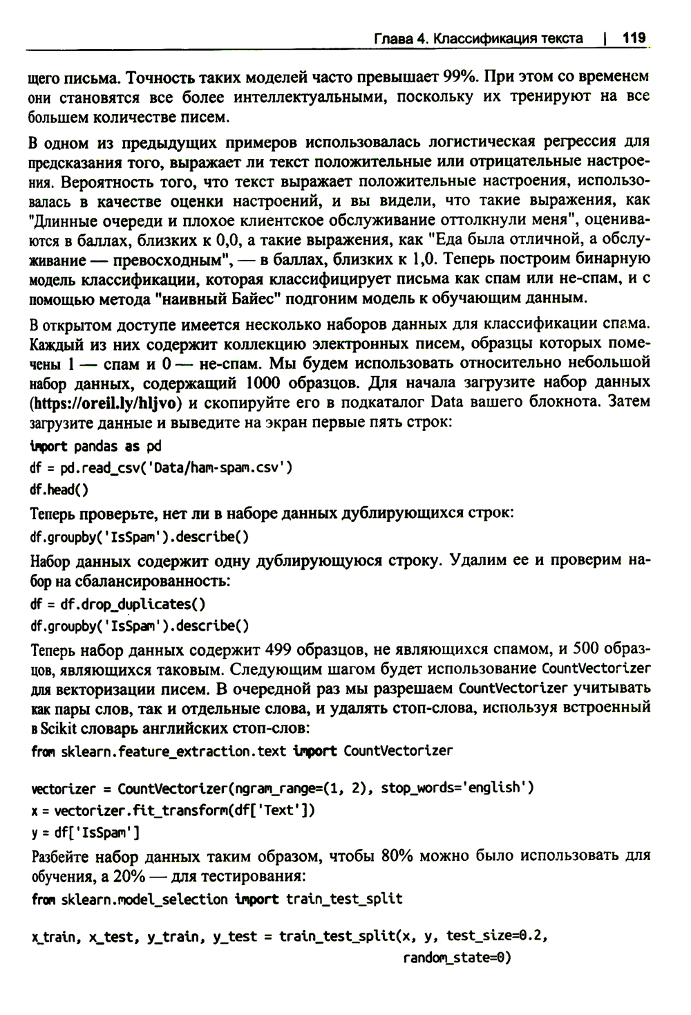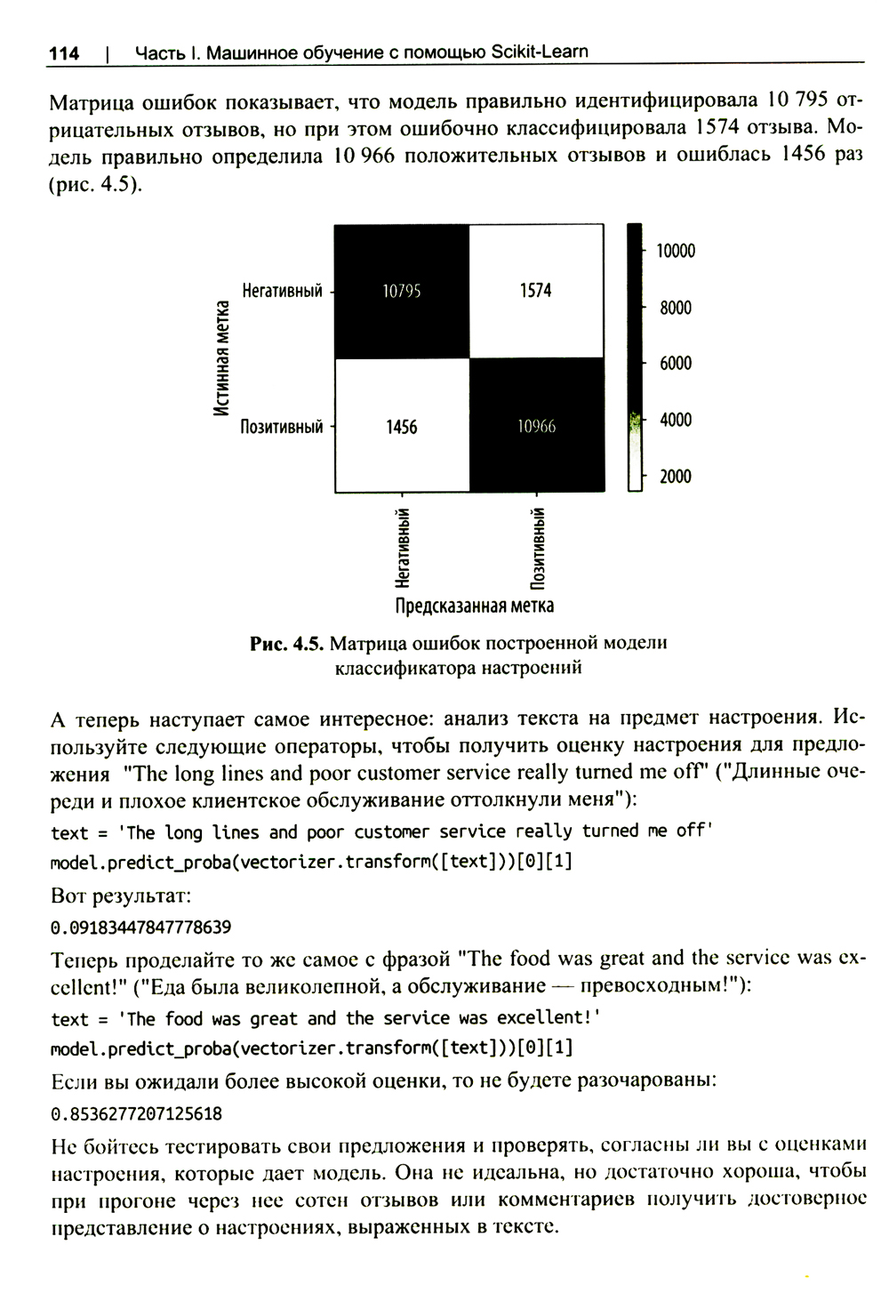 Книга рассказывает о применении искусственного интеллекта и машинного обучения в бизнесе и инженерной практике. Подробно описаны популярные алгоритмы машинного обучения и разъяснено, когда их целесообразно использовать. Приведены примеры построения моделей машинного обучения на языке Python с помощью библиотеки Scikit-Learn, а также создания нейронных сетей посредством библиотек Keras и TensorFlow. Изложены базовые принципы и способы оценки регрессионных моделей, моделей бинарной и многоклассовой классификации. Показаны примеры создания модели распознавания лиц и обнаружения объектов, языковых моделей, отвечающих на естественно-языковые вопросы и переводящих текст на другие языки. Рассмотрено использование набора облачных API Cognitive Services для внедрения ИИ в различные приложения.| Издательство | АЛИСТ |