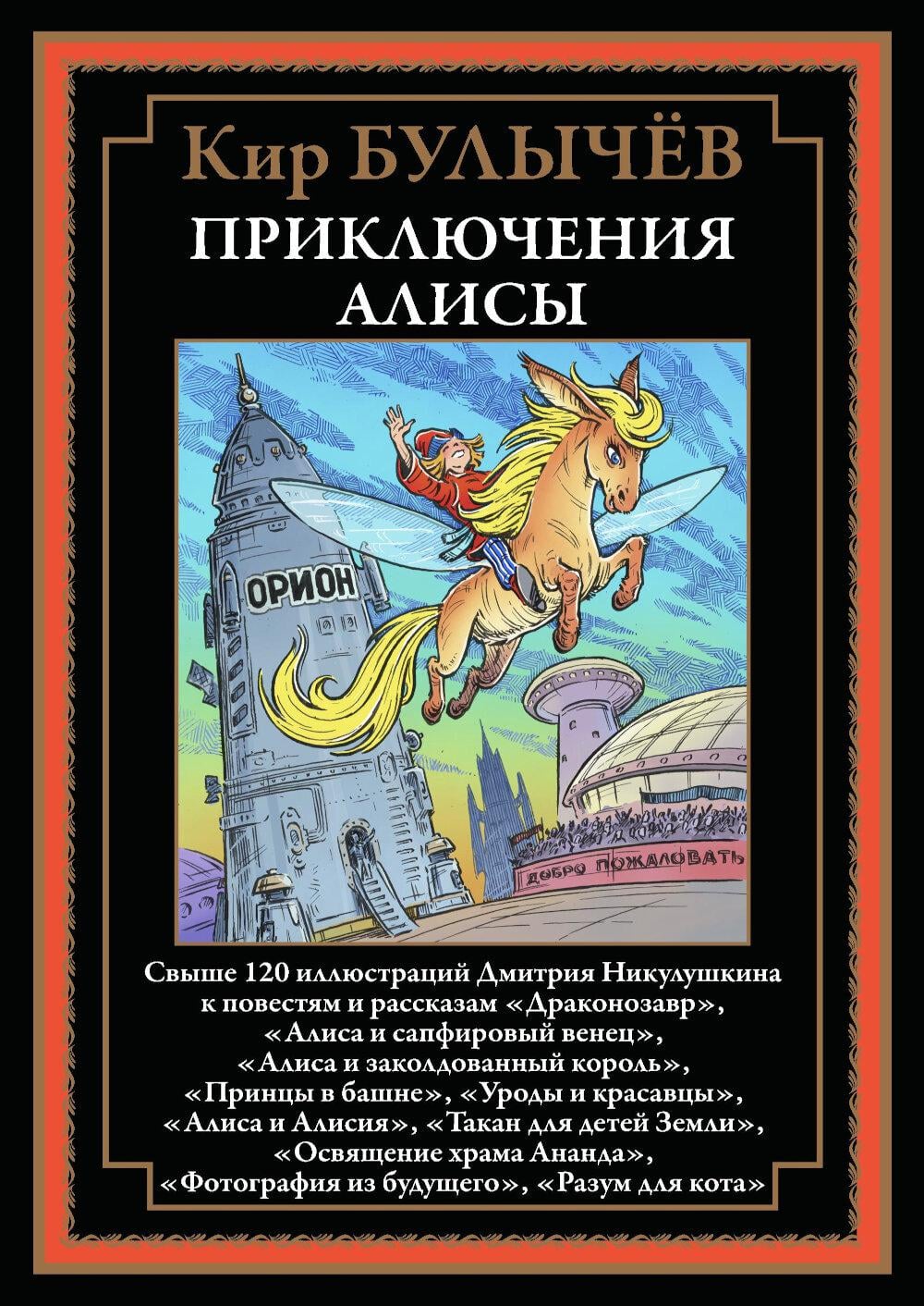 Кир Булычёв (1934-2003) - советский и российский писатель, переводчик, сценарист и драматург, доктор исторических наук. Свой творческий псевдоним Игорь Всеволодович Можейко составил из имени жены Киры Сошинской и девичьей фамилии матери - Марии Булычёвой. Можейко родился в Москве. С детства он любил читать, а особенно увлекался произведениями писателей-фантастов. После школы Игорь Всеволодович поступил в Московский государственный институт иностранных языков, а позднее окончил аспирантуру и начал работать в Институте востоковедения. Он писал историко-географические очерки для журналов, занимался переводами, защитил кандидатскую, а затем и докторскую диссертации. В научных кругах Игорь Можейко был известен своими публикациями по истории Юго-Восточной Азии. Фантастические рассказы и повести писатель публиковал исключительно под псевдонимом: в научной среде художественная литература считалась несерьёзной, и Можейко опасался столкнуться с осуждением коллег. Однако наибольшую славу он получил именно как писатель-фантаст, открывающий читателям двери в мир бескрайнего космоса, таинственного будущего и невероятных открытий. Особенно он тяготел к созданию циклов сочинений, объединённых общими героями, локациями или тематикой. К ним можно отнести серии о причудливом городе Великий Гусляр, о космическом докторе Владиславе Павлыше, об агенте ИнтерГалактической полиции Коре Орват и, конечно же, о находчивой девочке из будущего - Алисе. «Приключения Алисы» - самый известный цикл произведений Булычёва. Главной героиней увлекательных повестей и рассказов является школьница Алиса Селезнёва - отважная и любознательная девочка; она путешествует во времени и исследует самые удаленные уголки Вселенной. Прообразом Алисы стала дочь писателя. Удивительные истории о девочке из будущего Булычёв продолжал писать в течение многих лет. Он стремился сделать детскую литературу интересной новому поколению детей, растущему в условиях научно-технического прогресса. Произведения Булычёва имели колоссальный успех ещё при его жизни; остаются они популярными и в наши дни. Данное издание - шестой, заключительный сборник его сочинений о необыкновенной путешественнице в серии «Библиотека мировой литературы». В книгу вошло десять повестей и рассказов: «Драконозавр», «Алиса и сапфировый венец», «Алиса и заколдованный король», «Принцы в башне», «Уроды и красавцы», «Алиса и Алисия», «Такан для детей Земли», «Освящение храма Ананда», «Фотография из будущего», «Разум для кота». Текст «Фотографии из будущего» впервые публикуется на русском языке без сокращений. Чудесные иллюстрации к произведениям выполнил талантливый российский художник Дмитрий Николаевич Никулушкин.| Издательство | СЗКЭО |