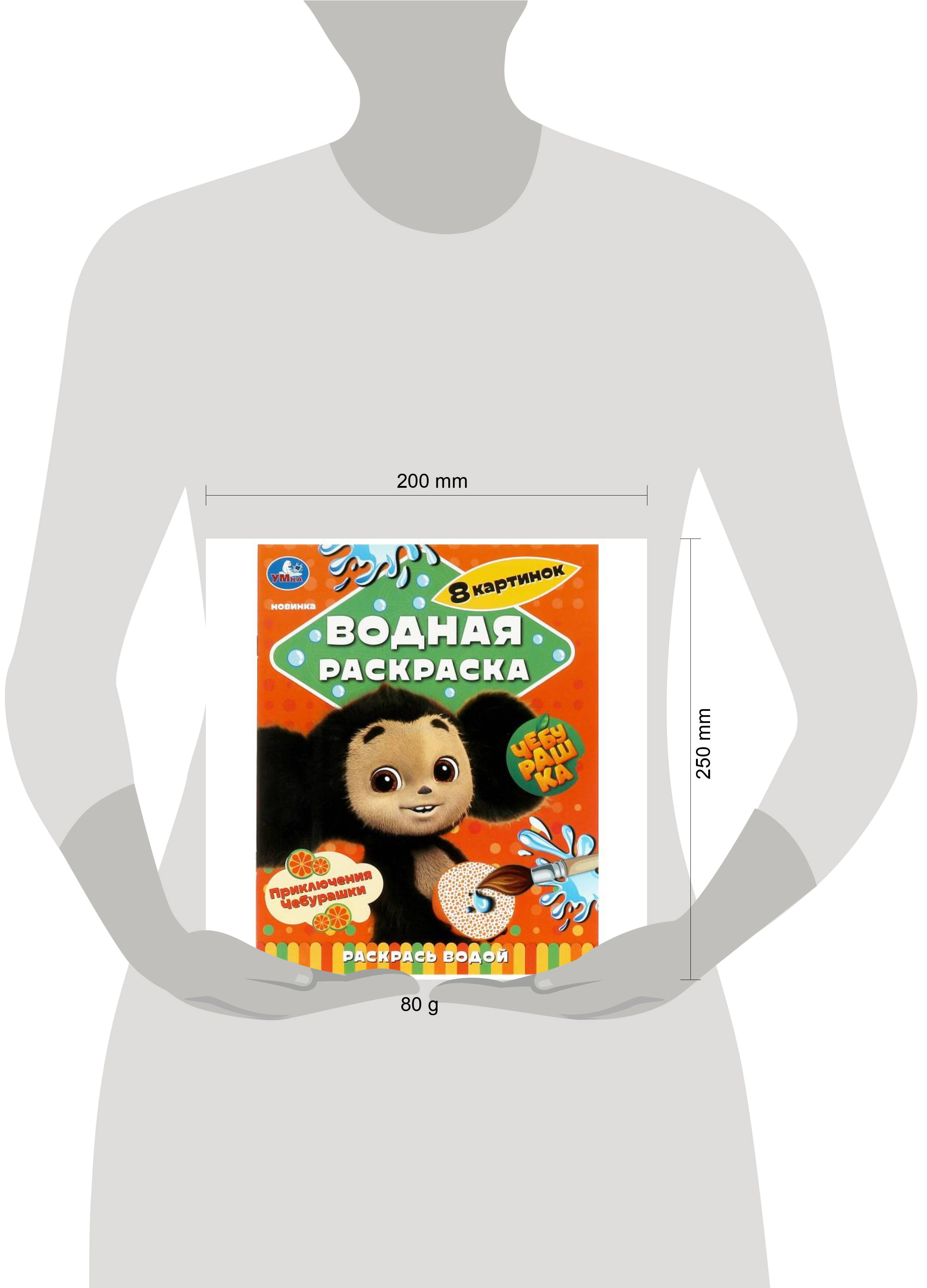 Приключения Чебурашки. Водная раскраска "Раскрась водой". 200х250мм. Скрепка. 8 стр. Умка в кор.50шт