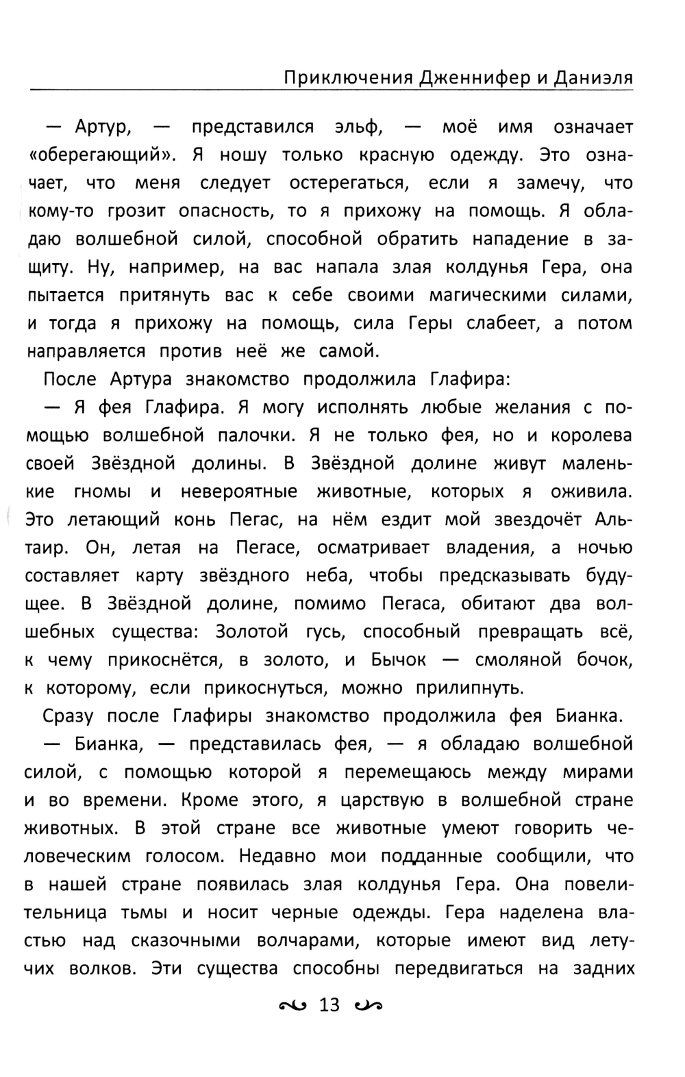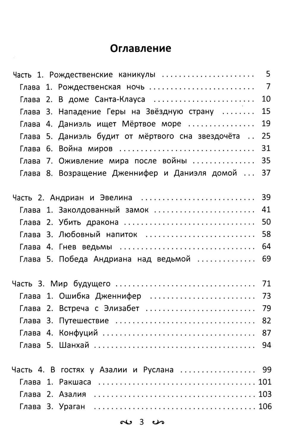 В первой части дети в рождественскую ночь попадают в сказочный мир эльфов, гномов и фей. Во второй части дети попадают в средние века. Там они встречают доблестного рыцаря Андриана. Дети помогают Андриану победить дракона и его злую мачеху, которая мешала жениться на возлюбленной Эвелине. В третьей части дети попадают в мир будущего. Мир роботов, похожих на людей. Даниэль и Дженнифер летают на НЛО. Они встречают царя обезьян, который помогает детям бороться с несправедливостью хана Чингиза. В четвёртой части Дженнифер и Даниэль попадают вместе со своими друзьями Русланом и Азалией в прошлое, где побеждают злую ведьму Ракшасу.| Издательство | Рипол Классик |