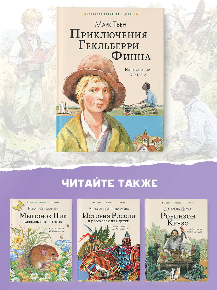 Марк Твен (1835-1910) - американский писатель, журналист и общественный деятель (его настоящее имя Сэмюэл Лэнгхорн Клеменс). Одни из самых известных его произведений - "Приключения Тома Сойера", "Приключения Гекльберри Финна", "Принц и нищий" и другие - внесли большой вклад в американскую и мировую литературу. Роман "Приключения Гекльберри Финна" впервые был опубликован в 1884 году и является продолжением книги "Приключения Тома Сойера". За тонкую иронию, сатиру и освещение острых социальных тем роман о Гекльберри Финне до сих пор пользуется большим успехом у читателей и представляет интерес для литературных критиков. Это история о бесстрашном Гек Финне и его чернокожем друге Джиме, которые, сплавляясь на плоту, переживают невероятные приключения, встречаются с разбойниками и с помощью хитрости и смекалки находят выход из самых трудных ситуаций. Произведение печатается без сокращений в классическом переводе Н. Дарузес. Рисунки В. Челака. Для среднего школьного возраста.| Издательство | АСТ |