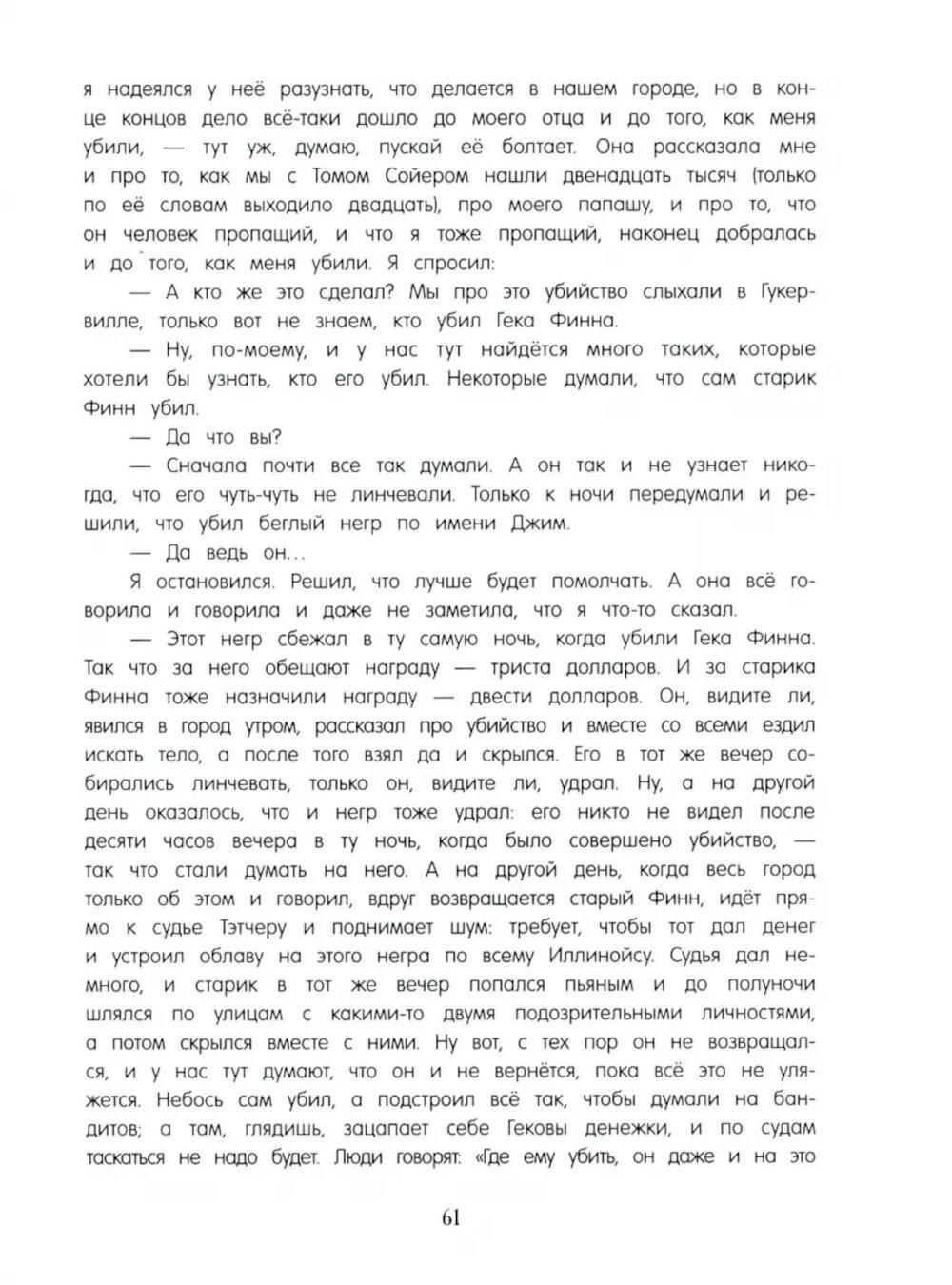 Продолжение замечательных «Приключений Тома Сойера» - история путешествия знаменитого беспризорника Гекльберри Финна и беглого раба Джима на плоту по реке Миссисипи. Опаснейшие приключения и новые знакомства, одно удивительнее другого, - перед глазами читателя проходит весь старый американский юг со множеством колоритных персонажей, которых так живо и точно описал Марк Твен. Любимый роман многих поколений читателей издан в классическом переводе Нины Дарузес и с новыми иллюстрациями Анатолия Иткина.