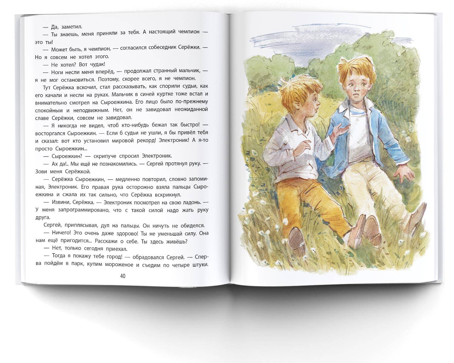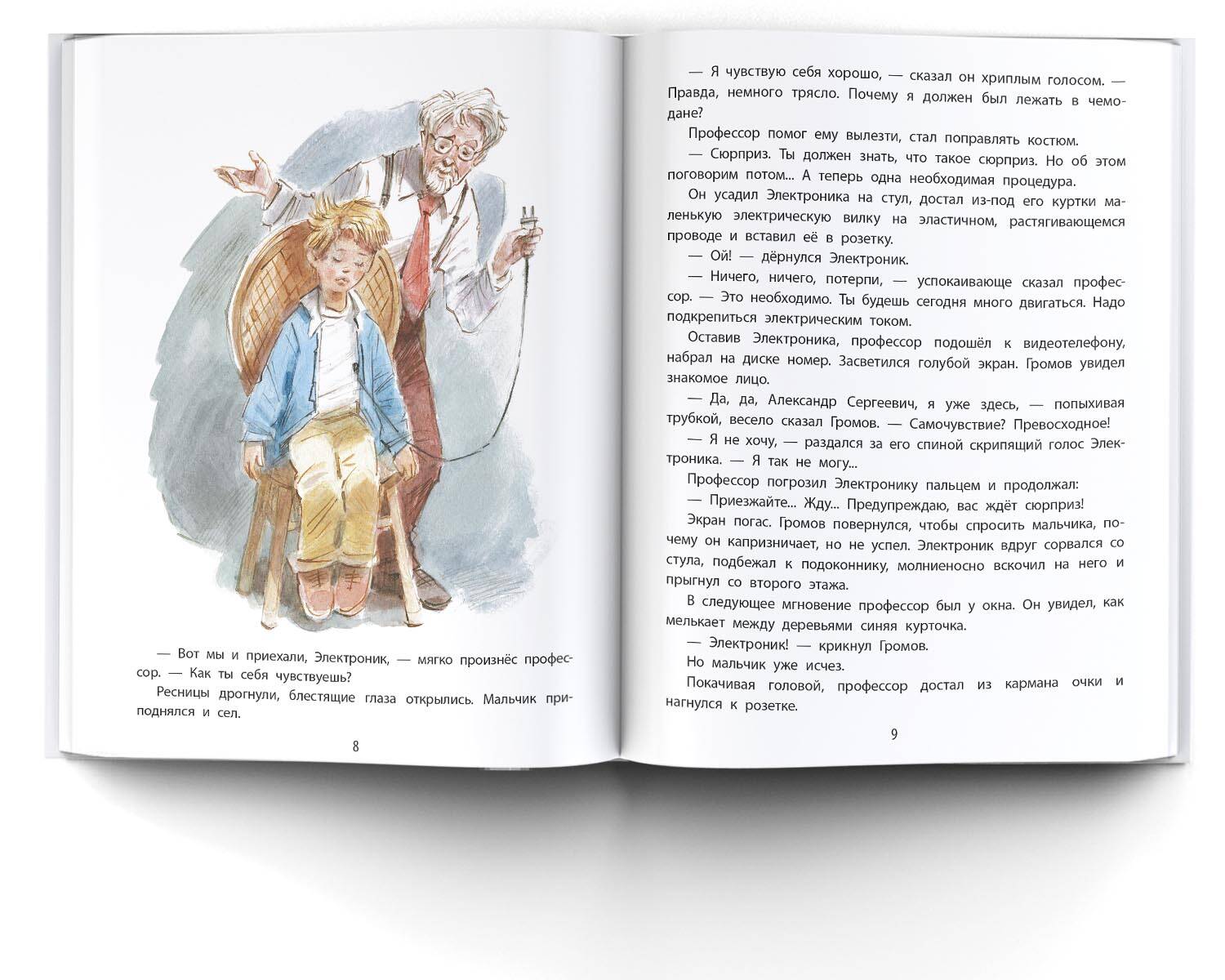 В книгу Евгения Велтистова "Приключения Электроника" вошла первая история о мальчике-роботе "Электроник - мальчик из чемодана". Серёже Сыроежкину необыкновенно повезло! Он встретил своего двойника-робота. Электроник теперь будет за Серёжу ходить в школу, делать уроки и другие нудные дела. Только всё не так просто, как сначала казалось Серёже. Электроник всё больше становится похож на человека, начинает чувствовать, размышлять, дружить. Останется ли место для Серёжи? По повести-фантазии снят культовый фильм "Приключения Электроника". Рисунки известного художника Вадима Челака. Для среднего школьного возраста.| Издательство | Издательство "АСТ" |