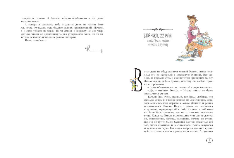 Весёлая повесть про Эмиля из Лённеберги, которую написала замечательная шведская писательница Астрид Линдгрен, а на русский язык блистательно пересказала Лилианна Лунгина, полюбилась и взрослым и детям всей планеты. Этот вихрастый мальчуган - ужасный озорник, он и дня не проживёт, не напроказничав. Ну кому придёт в голову гонять кошку, чтобы проверить, хорошо ли она прыгает?! Или надеть на себя супницу? Или поджечь перо на шляпе у пасторши? Или поймать в крысоловку родного отца, а поросёнка накормить пьяными вишнями?..