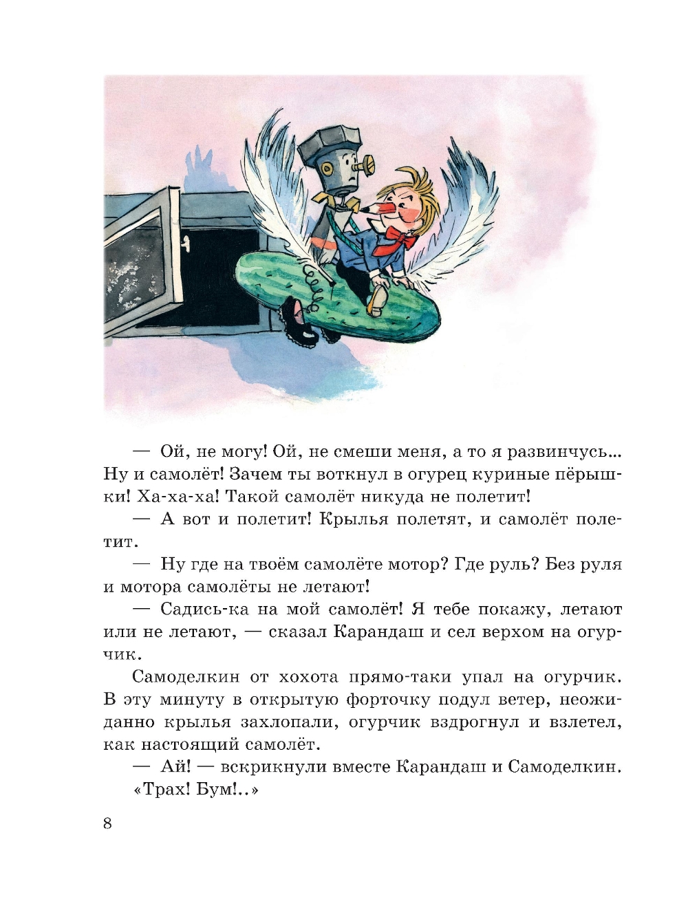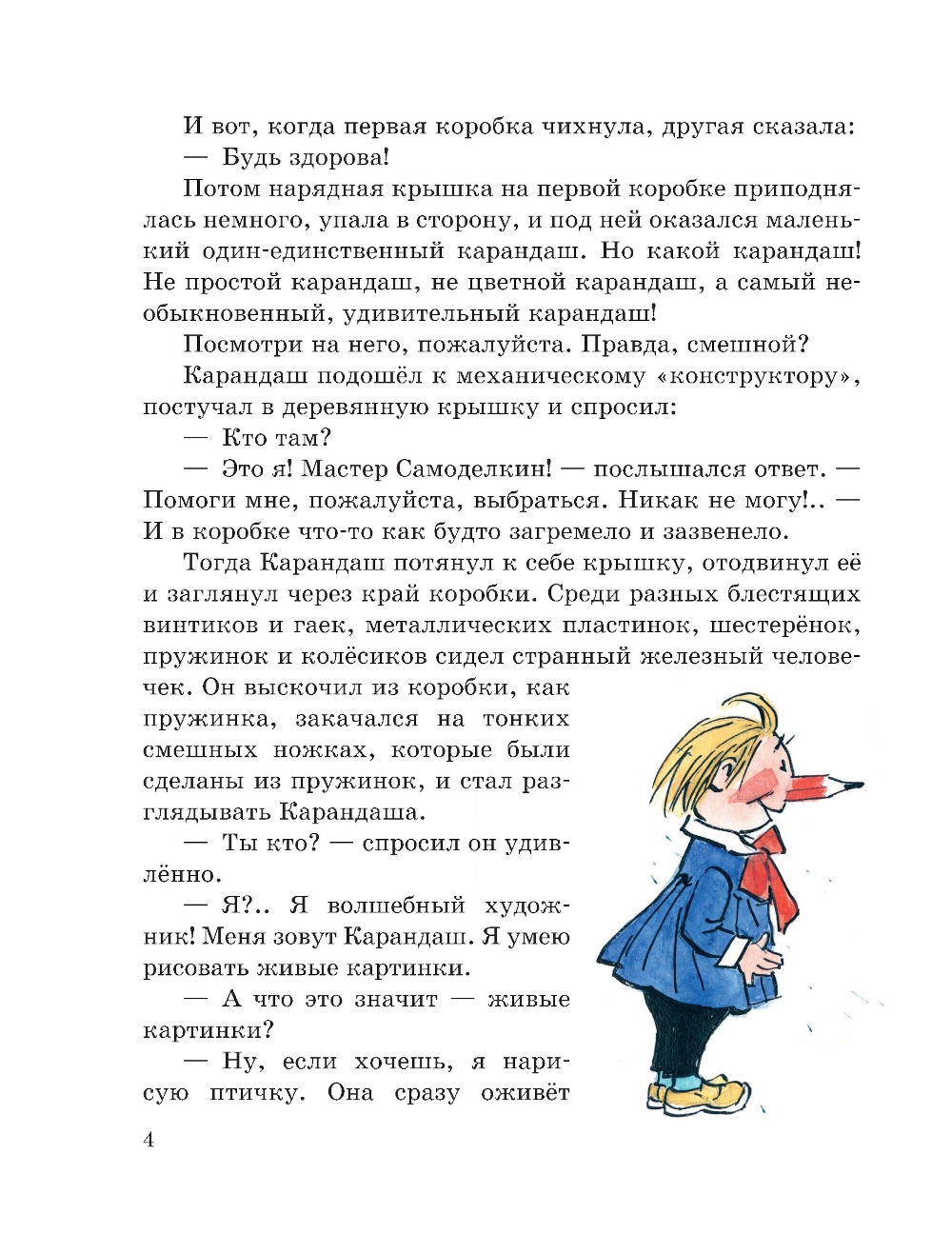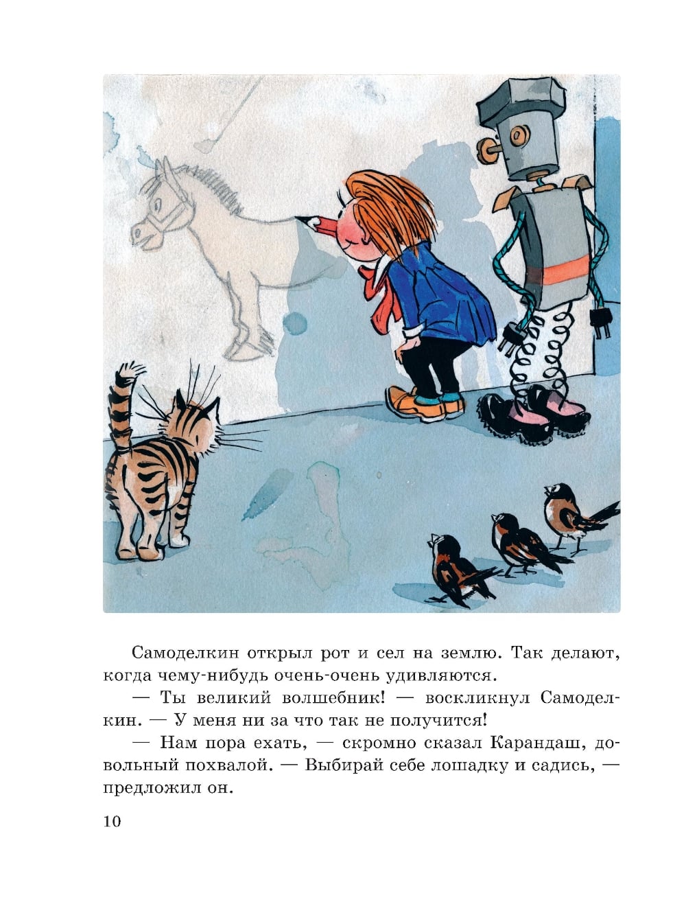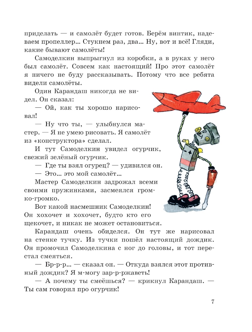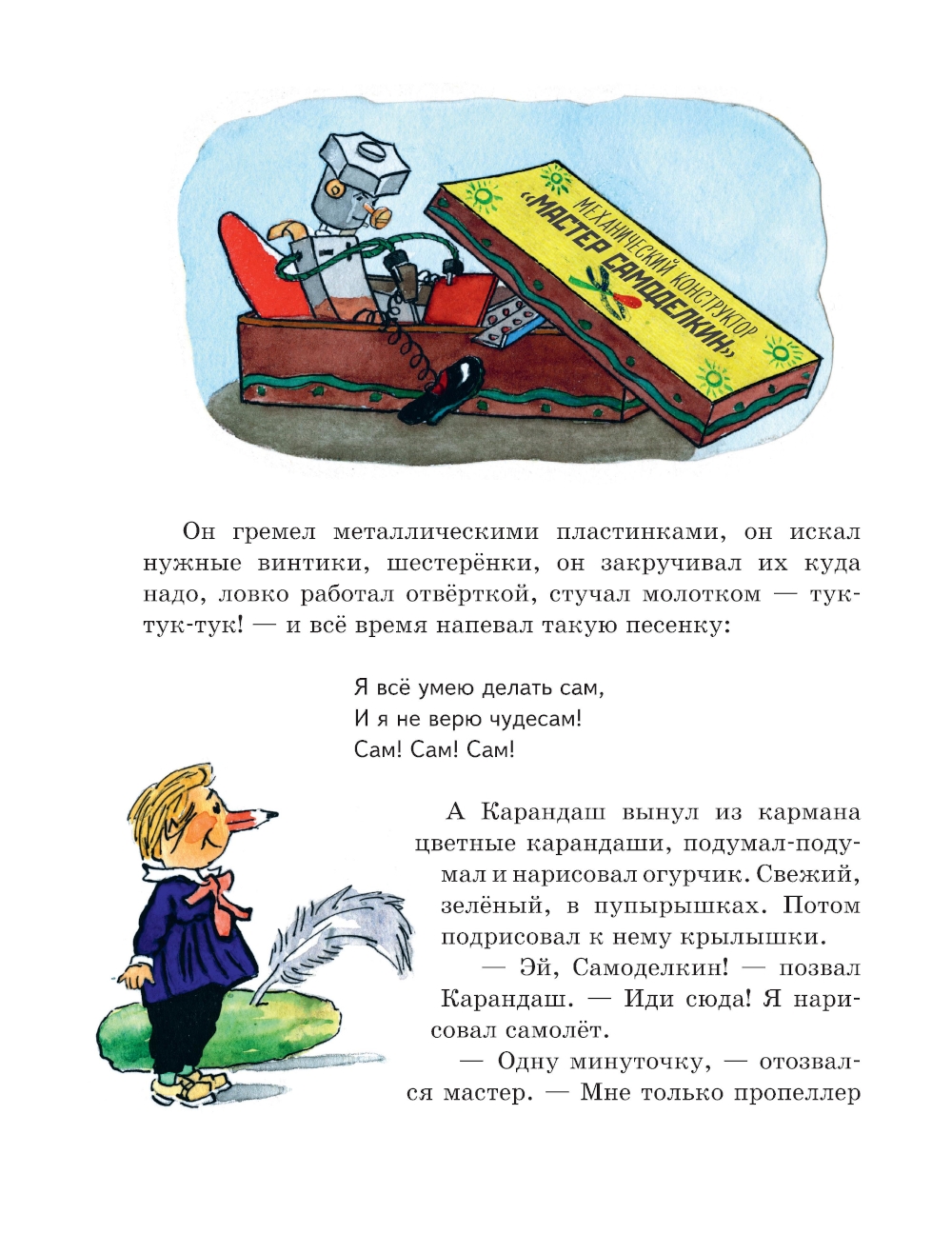 Двух маленьких волшебников - художника Карандаша и железного мастера Самоделкина - придумали для известного детского журнала «Весёлые картинки» писатель Юрий Дружков и художник Иван Семёнов. Удивительные истории, происходившие с весёлыми человечками, легли в основу увлекательной сказочной повести - одного из известнейших детских бестселлеров «Приключения Карандаша и Самоделкина».| Издательство | Эксмо |