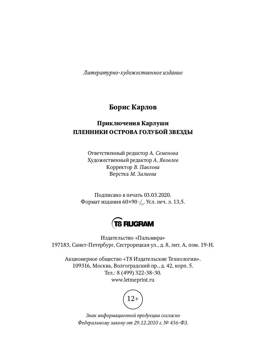 Аннотация: Приключения Карлуши. Пленники острова Голубой Звезды