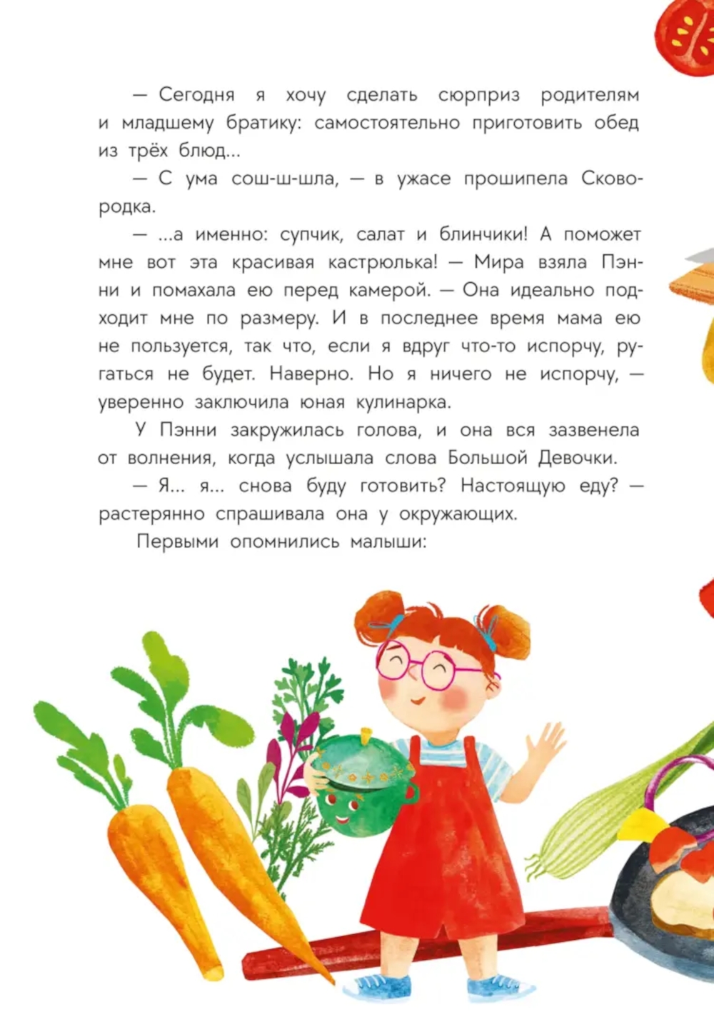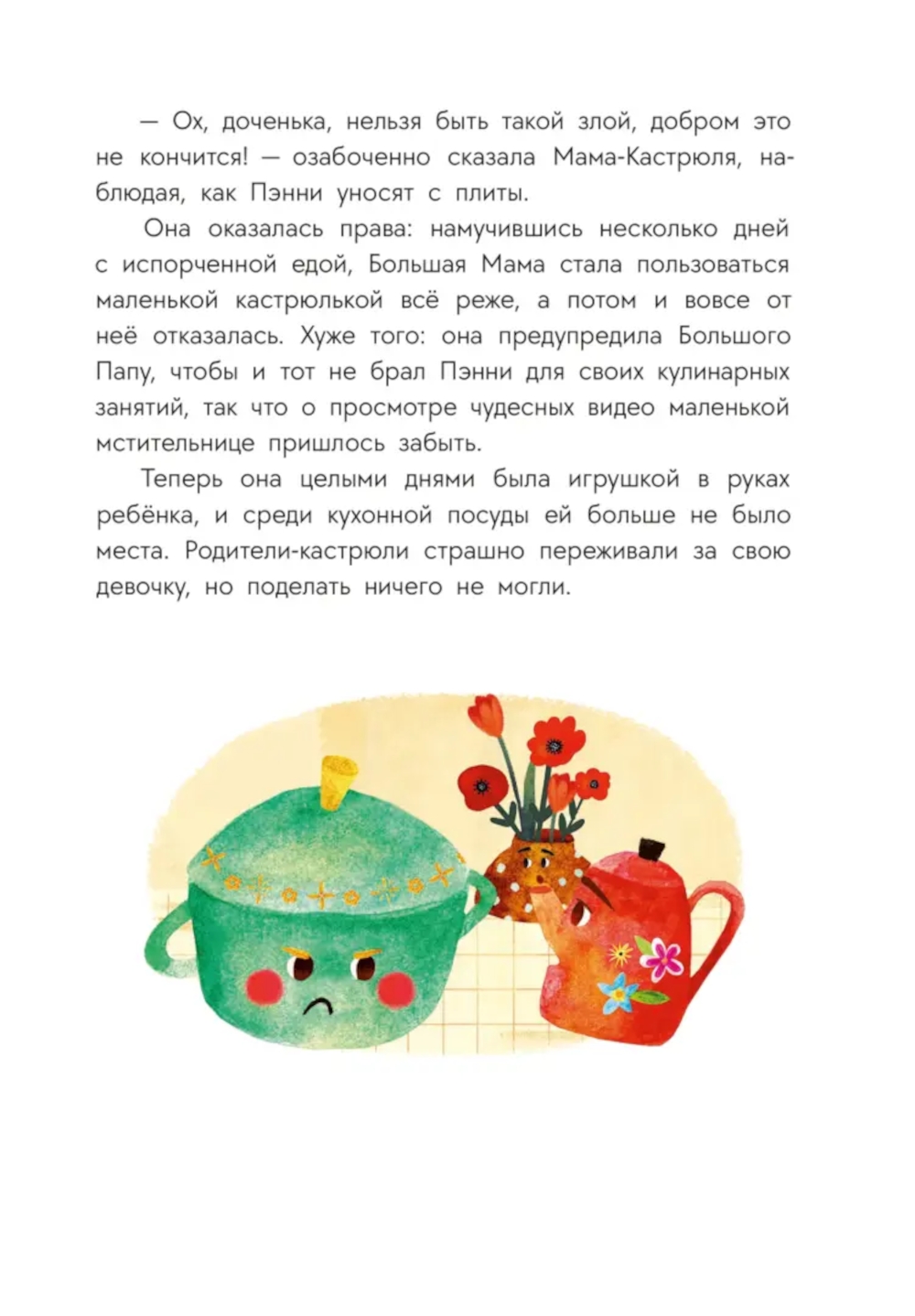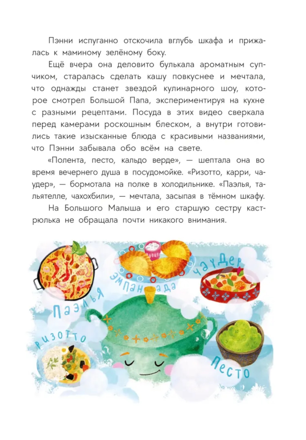 Маленькая кастрюлька по имени Пэнни живёт с мамой и папой в большой и дружной посудной семье. Тут вам и говорящие кувшинчики с мисочками, и бокалы с салатниками, чайные ложечки и ножи, загадочный Холодильник, и таинственная Кухня, где происходит столько всего интересного! А вокруг них - ещё одна семья, в которой тоже есть и папа с мамой, и малыш, и любознательная восьмилетняя девочка Мира, которая обожает готовить и даже ведёт свой кулинарный блог. А уж когда на Кухне появляется таинственный гость, начинаются настоящие кухонные приключения!| Издательство | Детская литература |