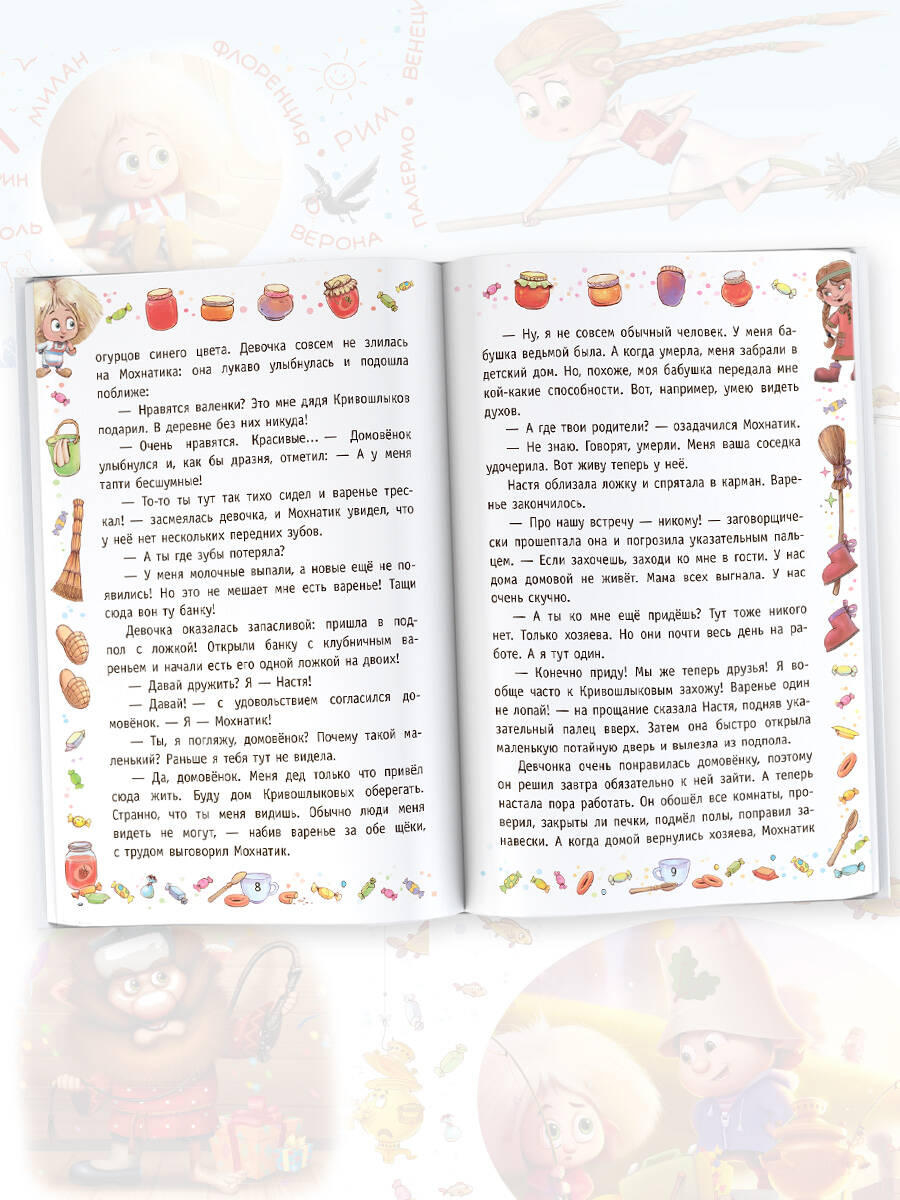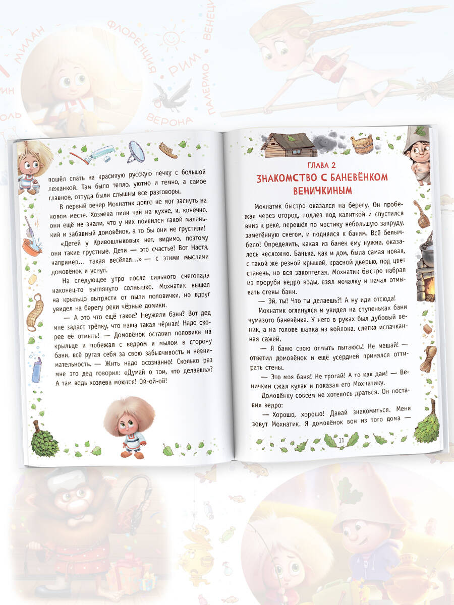 Приключения маленького и скромного домовёнка Мохнатика начинаются со знакомства с озорным баневёнком Веничкиным. Мохнатик больше всего на свете любит тапти, чай с конфетами и спокойствие. А Веничкину вечно на месте не сидится: то ведьму местную разозлит, то над соседом Галошей подшутит, то шалость какую учудит. Эта дружба совершенно изменила жизнь доброго домовёнка, научила его не только многим житейским мудростям, но и шалостям. Однажды до того доигрались, что тайный заговор ведьмы раскрыли. А что из этого получилось, можно лишь в сказке сказать да пером описать.| Издательство | ИЗДАТЕЛЬСТВО "АСТ" |