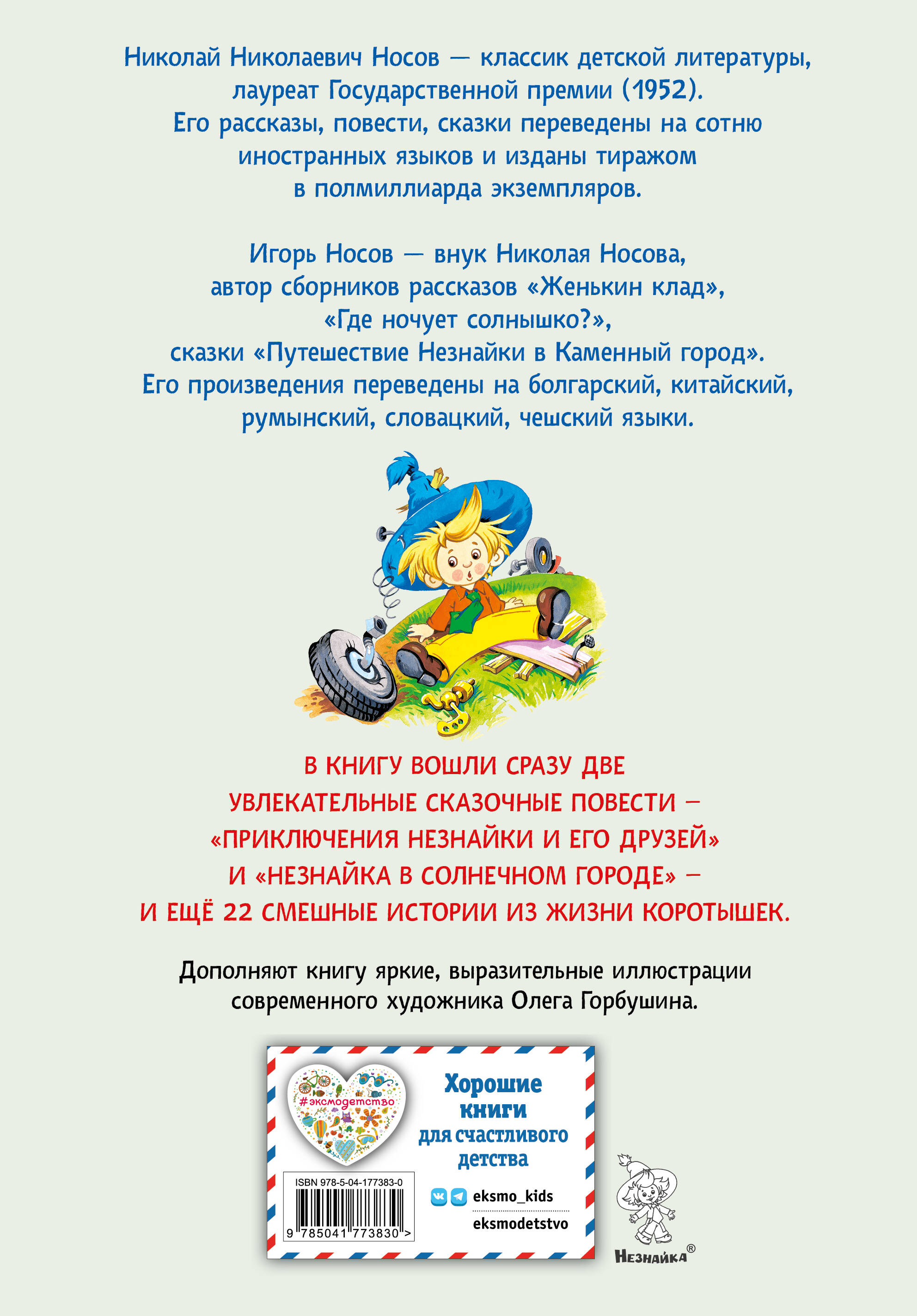 Книга в твёрдом переплёте с цветными накидками. Белая бумага. Чёткий шрифт. Прекрасный подарок юным читателям - две увлекательнейшие сказочные повести Николая Николаевича Носова и 22 весёлых рассказа Игоря Петровича Носова о жизни коротышек из Цветочного города! Озорной и неунывающий Незнайка - один из самых любимых героев нескольких поколений. Его необыкновенные приключения не только развлекают читателей, но и заставляют задуматься. И, конечно, помогают найти ответы на многие важные вопросы. Яркие и весёлые иллюстрации нарисовал художник Олег Горбушин.