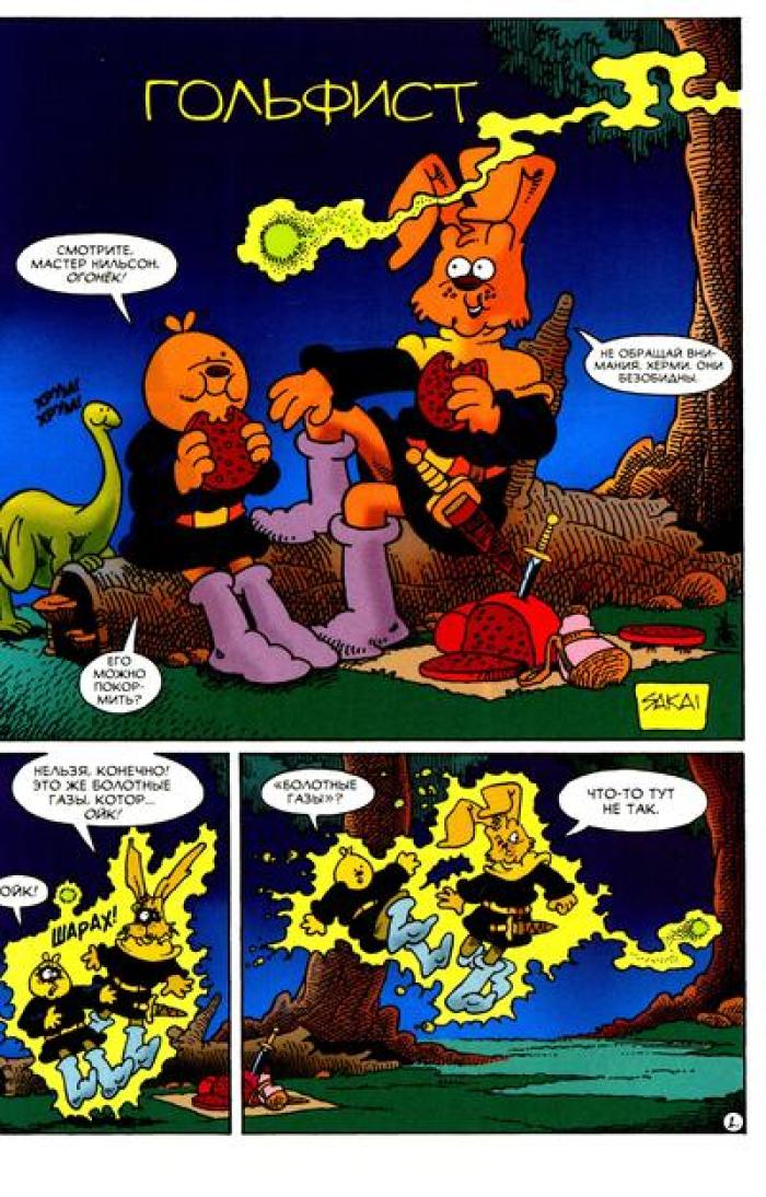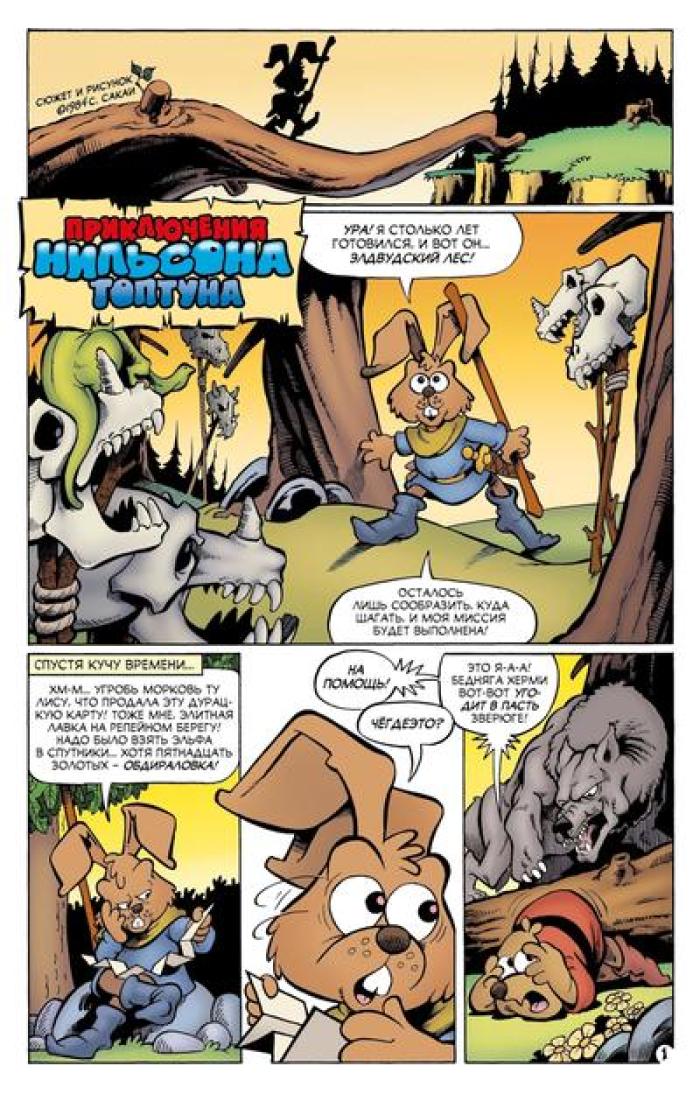 Миямото Усаги ступил на путь воина в далёкой Японии, а его предшественник, странствующий мечник следовал тропой приключений в Средневековой Европе! Кролик Нильсон Топтун, может, и не очень умён, но отважен, и вместе с простаком Херми они друзья - не разлей вода! Эти истории - не только предшественник «Усаги Ёдзимбо» Стэна Сакаи, но и забавные, увлекательные и красочные приключения двоих средневековых несмышлёнышей. В настоящее в издание входят все сюжеты приключений Нильсона и Херми и их столкновения с ворами, волшебниками, чудищами и географическим кретинизмом!| Издательство | Alpaca |