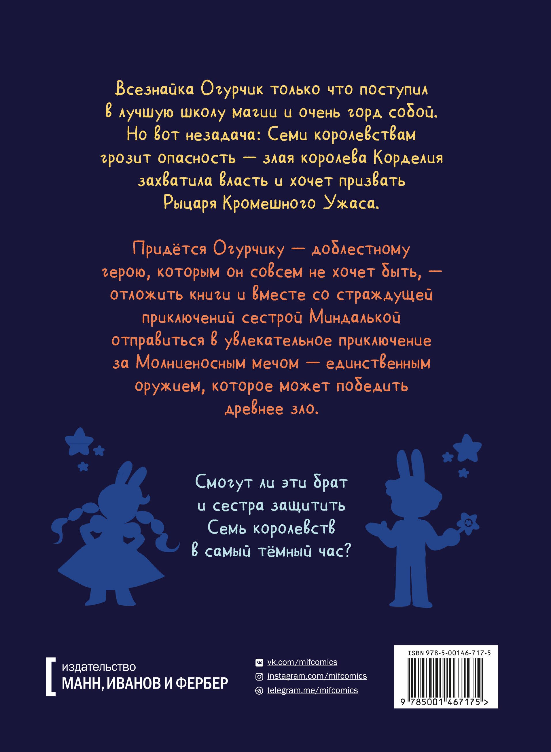 Огурчик очень горд собой - он поступил в лучшую школу магии. Но вот незадача, Семи королевствам срочно нужен доблестный герой, который спасёт жителей от злой королевы. И Огурчику вместе сестрой Миндалькой придется отправиться спасать мир.| Издательство | МАНН, ИВАНОВ И ФЕРБЕР ООО |