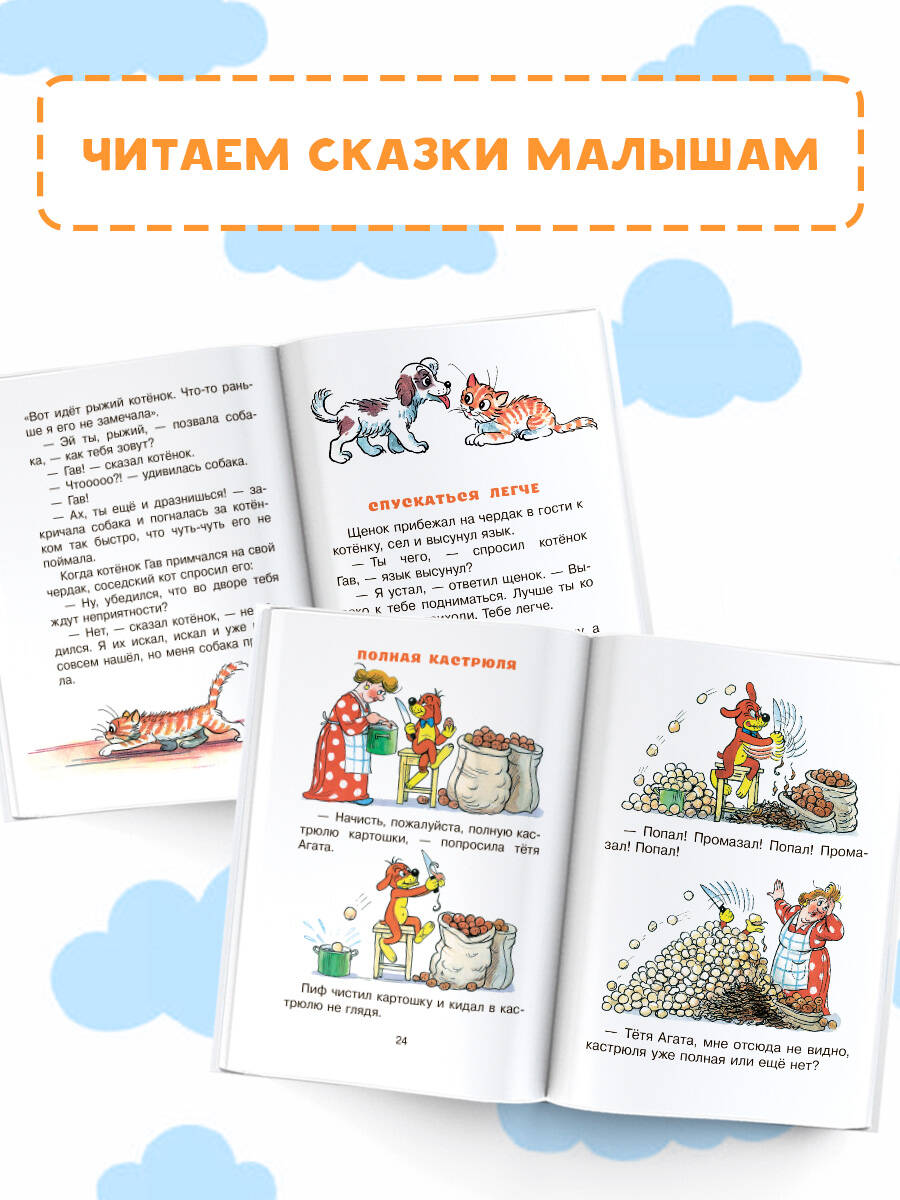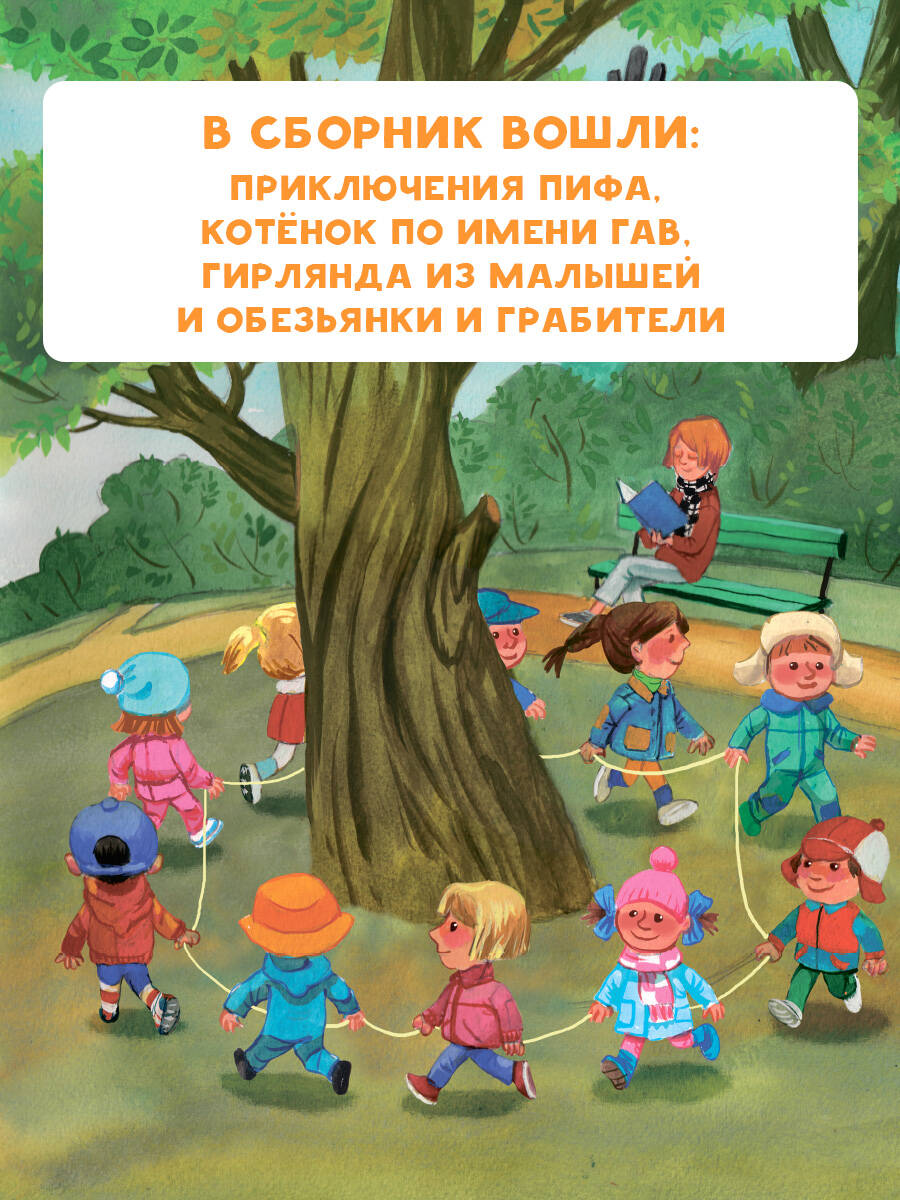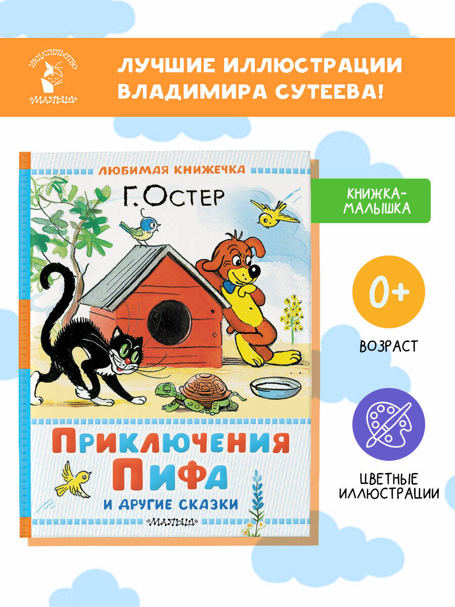 Познакомьтесь с Пифом - озорным французским псом! Захватывающие истории из его жизни записал Григорий Остер, а иллюстрации к ним создал Владимир Сутеев. Неуёмная энергия и богатая фантазия Пифа превращает любую бытовую ситуацию в захватывающее приключение! В этой книге собраны и другие сказки Григория Остера: сказки из цикла «Котёнка по имени Гав» с иллюстрациями В. Сутеева, а также приключения обитателей зоопарка в сказках «Гирлянда из малышей» и «Обезьянки и грабители», проиллюстрированных Ольгой Боголюбовой.| Издательство | Издательство "АСТ" |