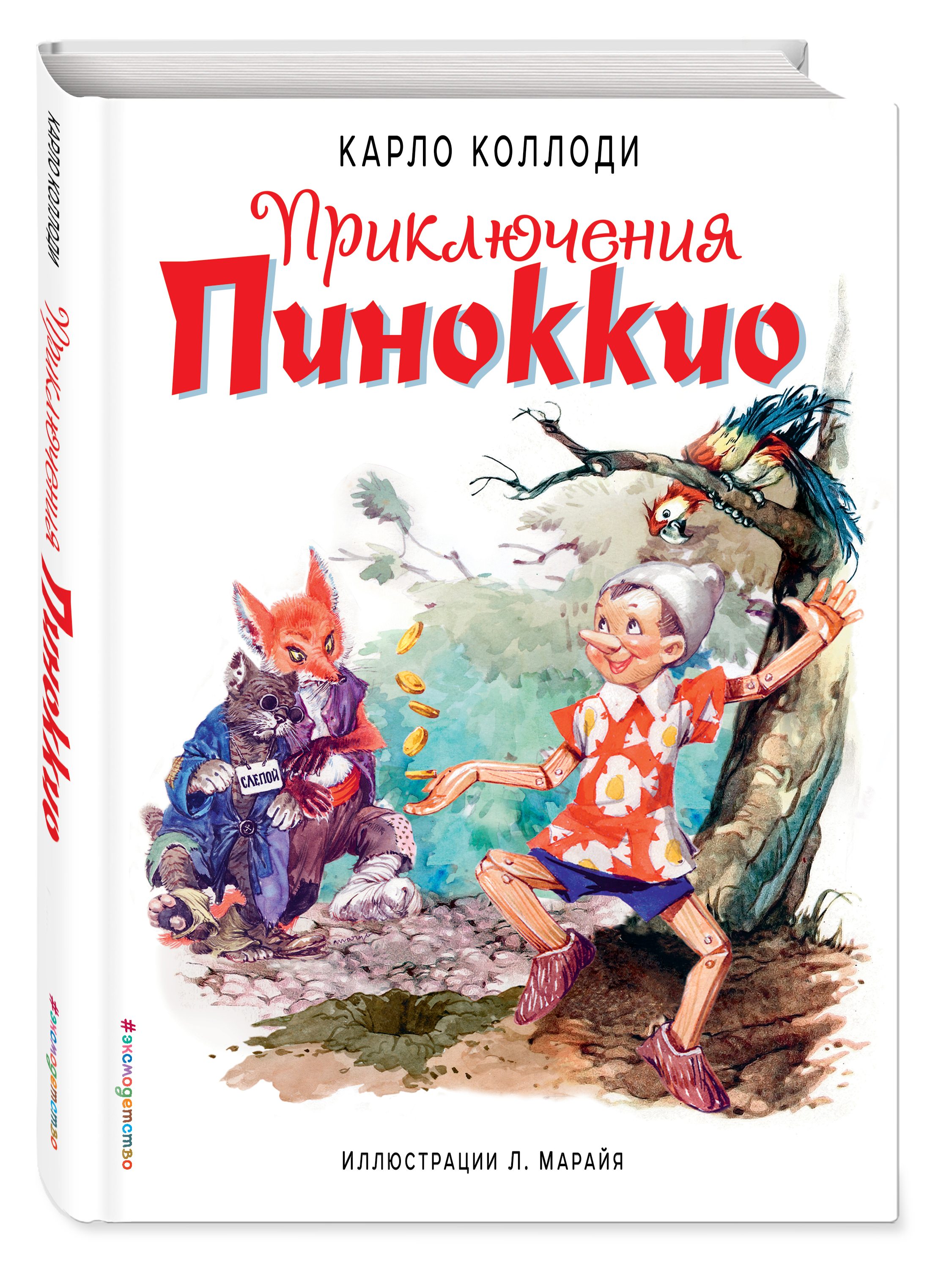 Как и настоящие маленькие дети, Пиноккио не хочет учиться, порою обожает выдумывать и лгать. Правда, из-за лжи начинает увеличиваться его нос… Ведь Пиноккио - это деревянная кукла, сделанная из полена, а не настоящий мальчик. И чтобы стать настоящим, ему придется отправиться в опасные приключения, совершить хорошие и правильные поступки, решить, что дороже для него - бездумные удовольствия или доброта, смелость и честность. Книга «Приключения Пиноккио» Карло Коллоди уже давно стала национальным достоянием Италии, и ее тиражи занимают лидирующие строчки не только среди детских, но и среди взрослых книг, а сюжет сказки лег в основу художественных фильмов. Либико Марайя (1912-1983) - признанный мастер классической книжной иллюстрации. Его манере, волшебной и реалистической одновременно, подражали многие художники; это, безусловно, лучшая классика иллюстрирования. В юности ему довелось работать и театральным оформителем, и художником по костюмам, и выступать на сцене в качестве актера и певца. После окончания Второй мировой войны наступил самый плодотворный этап в творческой карьере Либико Марайи: его основным занятием стало создание иллюстраций к детским книгам. Он обладал способностью очень бережно и внимательно относиться к авторскому тексту. Пересказывая страницы шедевров детской литературы с помощью визуальных образов, художник выпускал на волю творческую фантазию - и страницы книг заполнялись фигурами, выполненными в яркой цветовой гамме, выразительными сценами, запоминающимися персонажами, которые буквально оживали. С 1947 года и на протяжении более 20 лет Марайя создал тысячи рисунков к самым лучшим детским книгам: «Приключения Тома Сойера» М. Твена, «Рождественская песнь» и «Приключения Оливера Твиста» Ч. Диккенса, «Алиса в Стране Чудес» Л. Кэрролла, «Моби Дик» Г. Мелвилла, «Сказки» Г.-Х. Андерсена, «Путешествие Гулливера» Д. Свифта и многим другим. Наиболее известная его работа - иллюстрации к «Приключениям Пиноккио» К. Коллоди. Для каждой книги иллюстрации Марайя - это параллельная визуальная история.| Издательство | ООО "Издательство "Эксмо" |