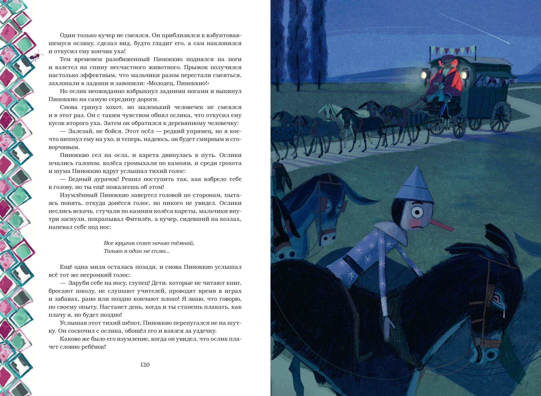 ВПЕРВЫЕ В РОССИИ! Иллюстрации Пепа Монтсеррата - лауреата Национальной премии в области иллюстрации (Premio Nacional de Ilustración)! «Приключения Пиноккио» - удивительная фэнтези-сказка, которая раскрывает перед нами глубокую тему становления личности. Проходя через многочисленные испытания, совершая ошибки и претерпевая физические изменения, Пиноккио постепенно понимает простую, но важную истину: подлинная человечность требует больших усилий, но неизменно вознаграждается. Иллюстрации испанского мастера Пепа Монтсеррата помогут погрузиться в необыкновенную атмосферу приключений Пиноккио, история которого вырастает перед нами как настоящее театральное представление. Полный перевод выполнен Камиллом Данини. Издание в твёрдом переплёте. Полусупер. Металлизированная плёнка на обложке. Изысканное стильное оформление. Белая бумага. Чёткий, удобный для чтения шрифт. Цветные иллюстрации. Серия книг «Время для классики» - это выдающиеся произведения мировой литературы в выразительном, стильном оформлении. Открываете вы книгу впервые или хотите ещё раз перечитать знакомые строки - в любом случае вас ждёт встреча с самим собой. «Время для классики» - это время для себя: для своих желаний, надежд, впечатлений и воспоминаний. Проведите его с удовольствием!| Издательство | ООО "Издательство "Эксмо" |