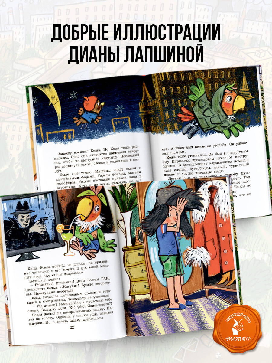 Однажды попугай Кеша обиделся на Вовку и улетел из дома. С тех пор начались его захватывающие приключения. Он успел побывать артистом, пожить у нового хозяина, встретить нового друга - воробушка Колю, спасти его от холодов. А ещё - вместе с ним отправиться в Африку, а попасть в Арктику, совершить подвиг и в конце концов понять: нигде нет места лучше дома! Эти и другие истории о дружбе, взаимопомощи и храбрости читайте в книге «Приключения попугая Кеши».| Издательство | Издательство "АСТ" |