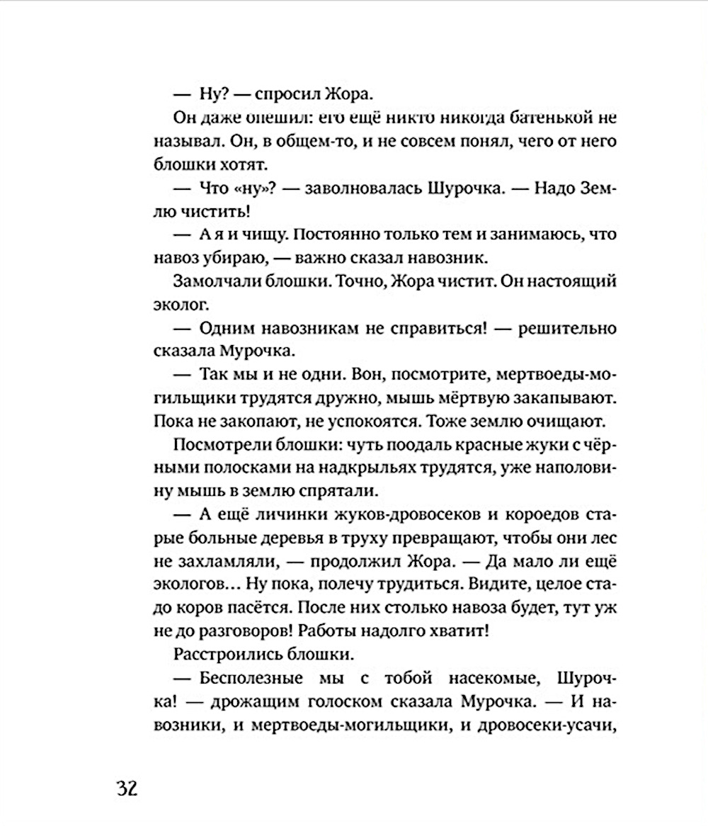 Блошки - это очень «удобные» существа, они взаимодействуют практически со всем животным миром. Вместе с ними ребенок узнает, почему ворон совсем не муж вороне, как муравьи весь муравейник кормят, отчего у кузнечика уши на ногах, какие насекомые поют лучше всех и многое-многое другое. «Приключения Шурочки и Мурочки» - это не только интересное чтение, но и кладезь полезной информации. Книгу написали биологи Марина Дороченкова и Анна Кравчук, поэтому вы можете быть уверены: все факты про насекомых и животных проверены. Отправляйтесь в веселое путешествие вместе с Шурочкой и Мурочкой!| Издательство | Клевер-Медиа-Групп |