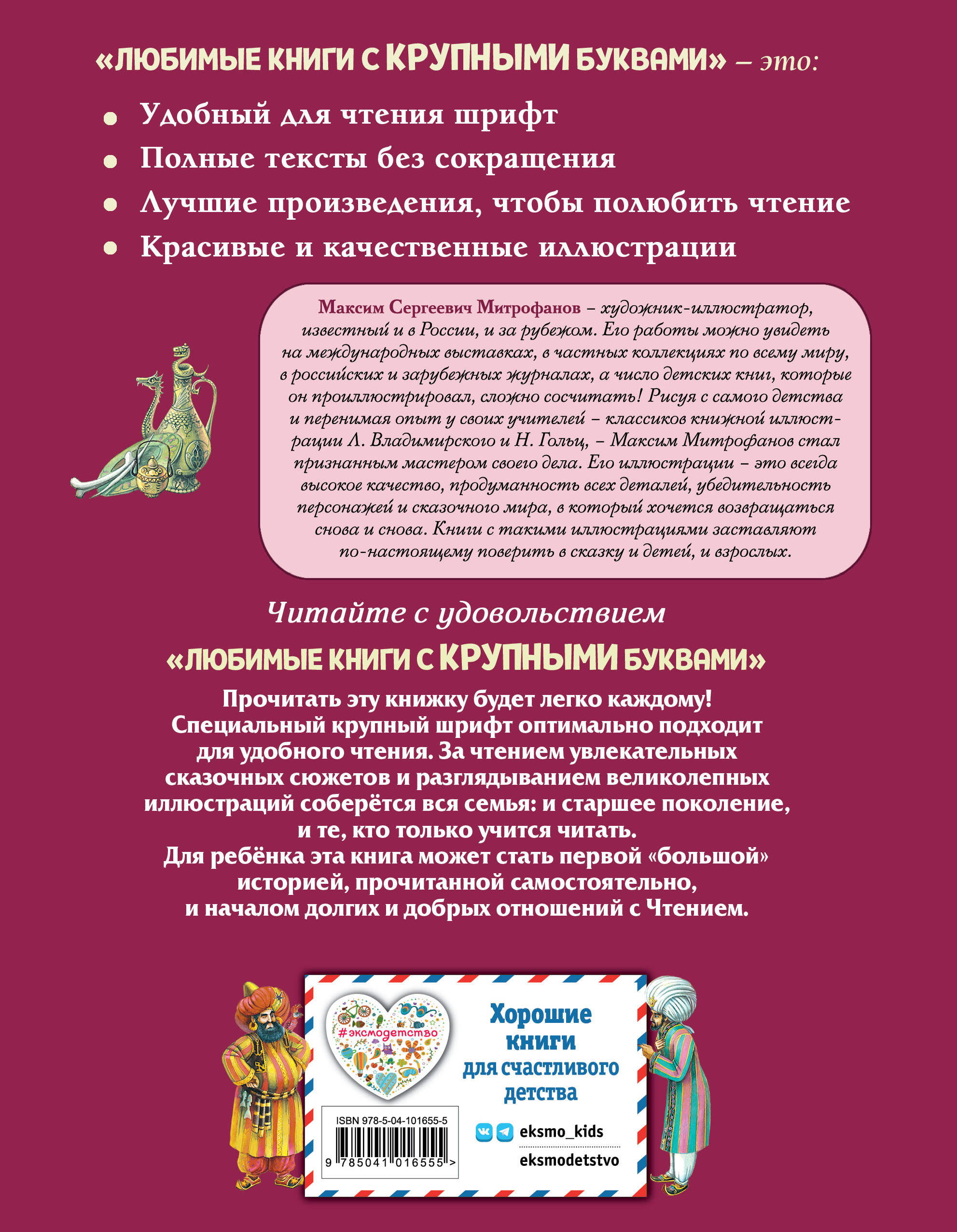 Синдбад-мореход, находчивый и отважный путешественник, пускается в увлекательные плаванья в поисках чудес и опасностей! В далеких странах он встретит великанов и неведомых зверей, пролетит на лапе огромной птицы Рока, найдет несметные богатства и благодаря своей смекалке и храбрости избежит гибели. В это издание вошли все семь историй о невероятных приключениях Синдбада, которые непременно увлекут маленьких читателей. А благодаря специальному крупному шрифту прочитать книгу будет легко каждому. Великолепные иллюстрации выполнил Максим Митрофанов - художник-иллюстратор, известный в России и за рубежом.| Издательство | ООО "Издательство "Эксмо" |