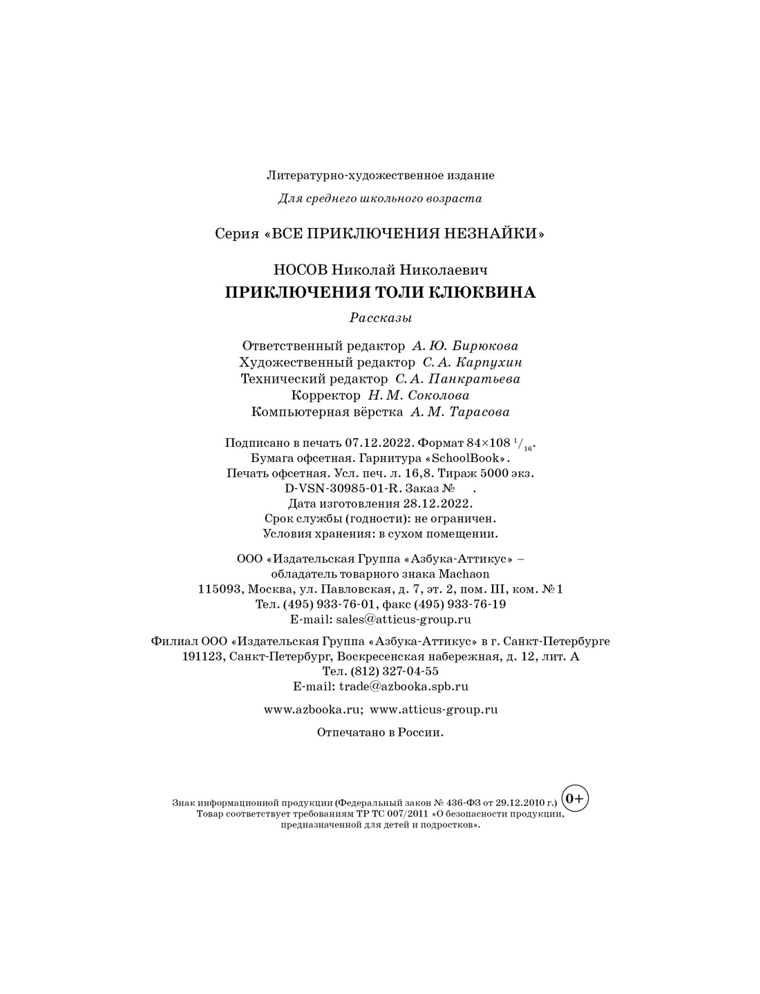 Аннотация: Приключения Толи Клюквина. Рассказы