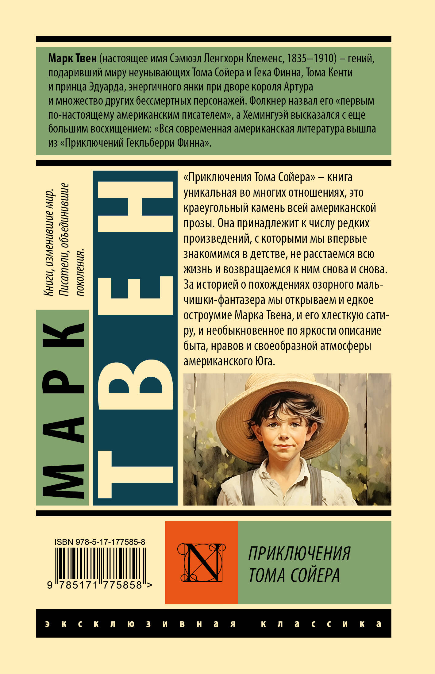 - Признанный шедевр американской литературы. - Хотя «Приключения Гекльберри Финна», вторая книга о Томе и Геке, частенько затмевает своего предшественника, именно «Приключения Тома Сойера» были самой продаваемой книгой Марка Твена при жизни автора. - «Приключения Тома Сойера» более тридцати раз адаптировались для кино и телеэкранов. - Издание в серии «Эксклюзивная классика» - в узнаваемом оформлении и твердой обложке.| Издательство | Издательство "АСТ" |