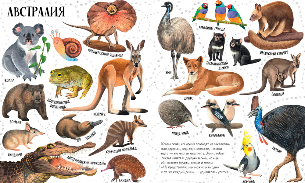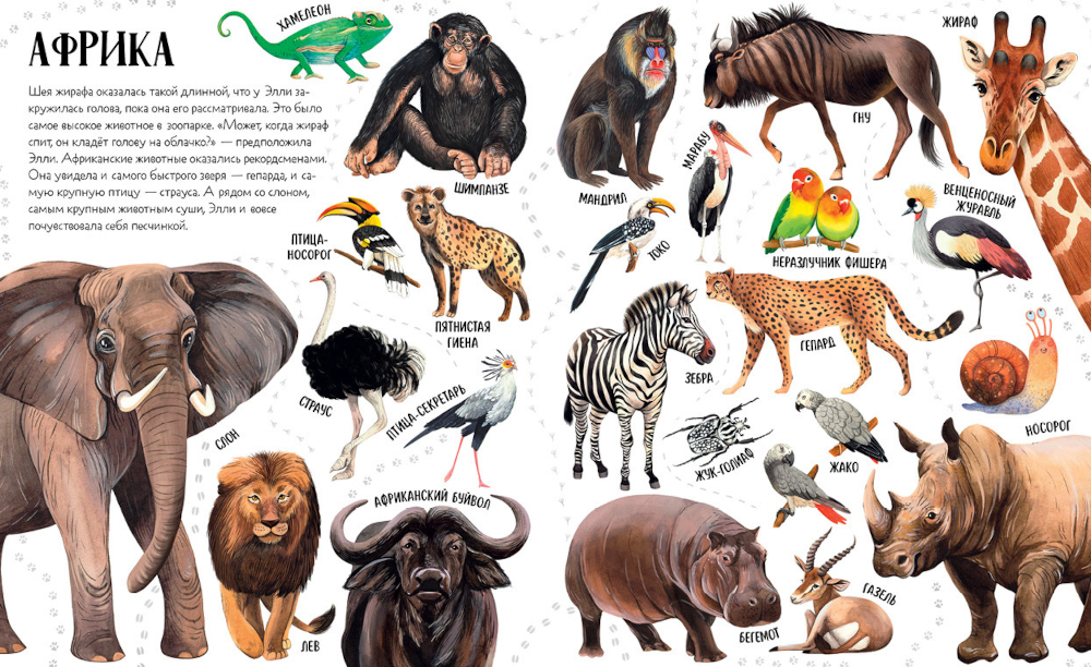 Улитка Элли такая любопытная! Однажды она попадает в ящик с фруктами, который отвезли в зоопарк. Так начинается новое приключение улиточки, где она знакомится с совершенно разными животными, узнаёт, как они выглядят, называются, где их родное место обитания. Отправляйтесь в путешествие вместе с Элли и изучайте удивительный мир зверей и птиц!| Издательство | Клевер-Медиа-Групп |